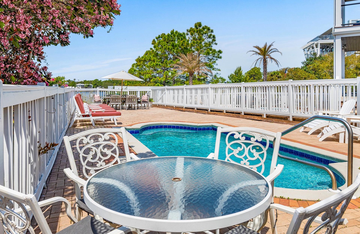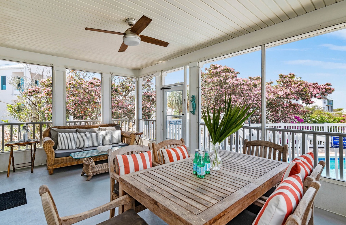 Looking for the perfect getaway for the entire family? You just found it! This beautiful five bedroom beach home located in a quiet area of Seagrove Beach, boasts cozy, comfortable décor inside and outside. Enjoy time with friends and family on a lovely screened porch overlooking a beautiful, lakefront private pool (10 x 20).