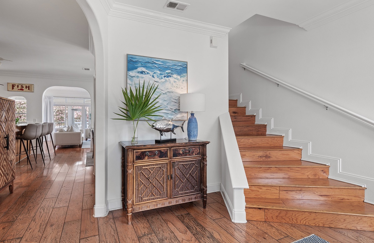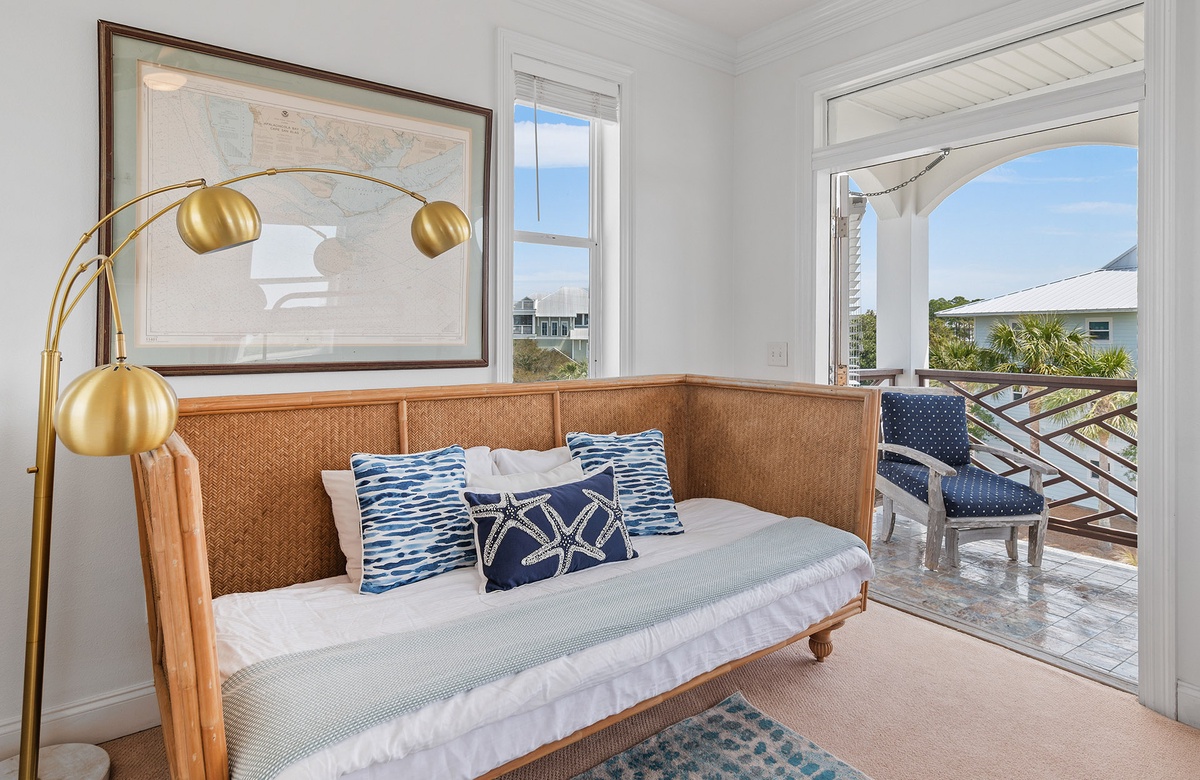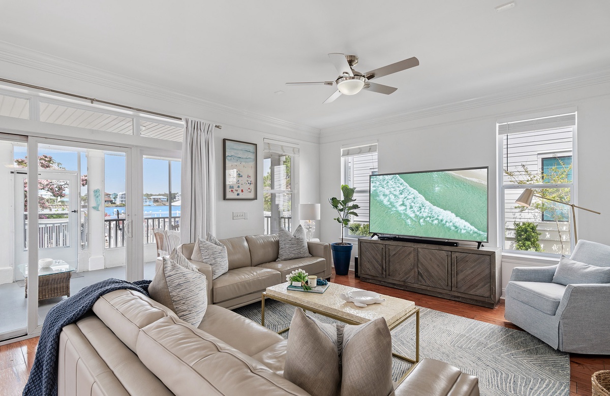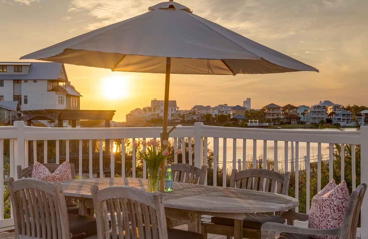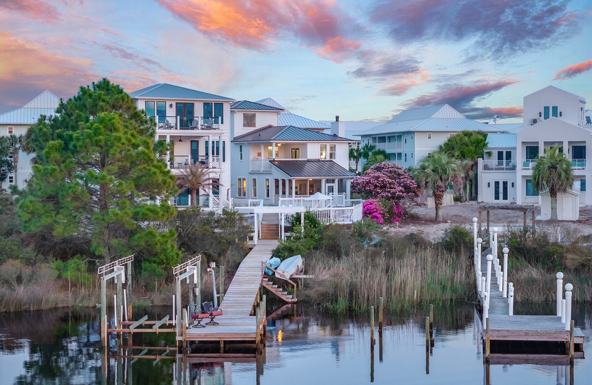 ‘A Villa Lago’ is perfectly located directly on Eastern Lake with a semi-private dock and only a short walk to the sugar white sands of the beach. This vacation dream home features a double living room, gourmet kitchen, sunny dining area, AND beautiful lake and gulf views. A Villa Lago has 5 bedrooms and 4 bathrooms and comfortably sleeps 12. The bonus tower room is perfect for the kids with a TV, mini fridge and private deck!