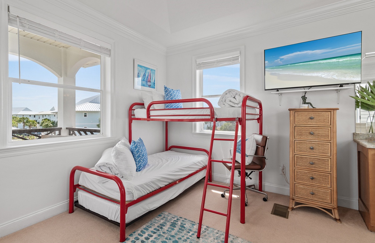- Tower room with twin bunk bed and trundle, twin daybed, + TV