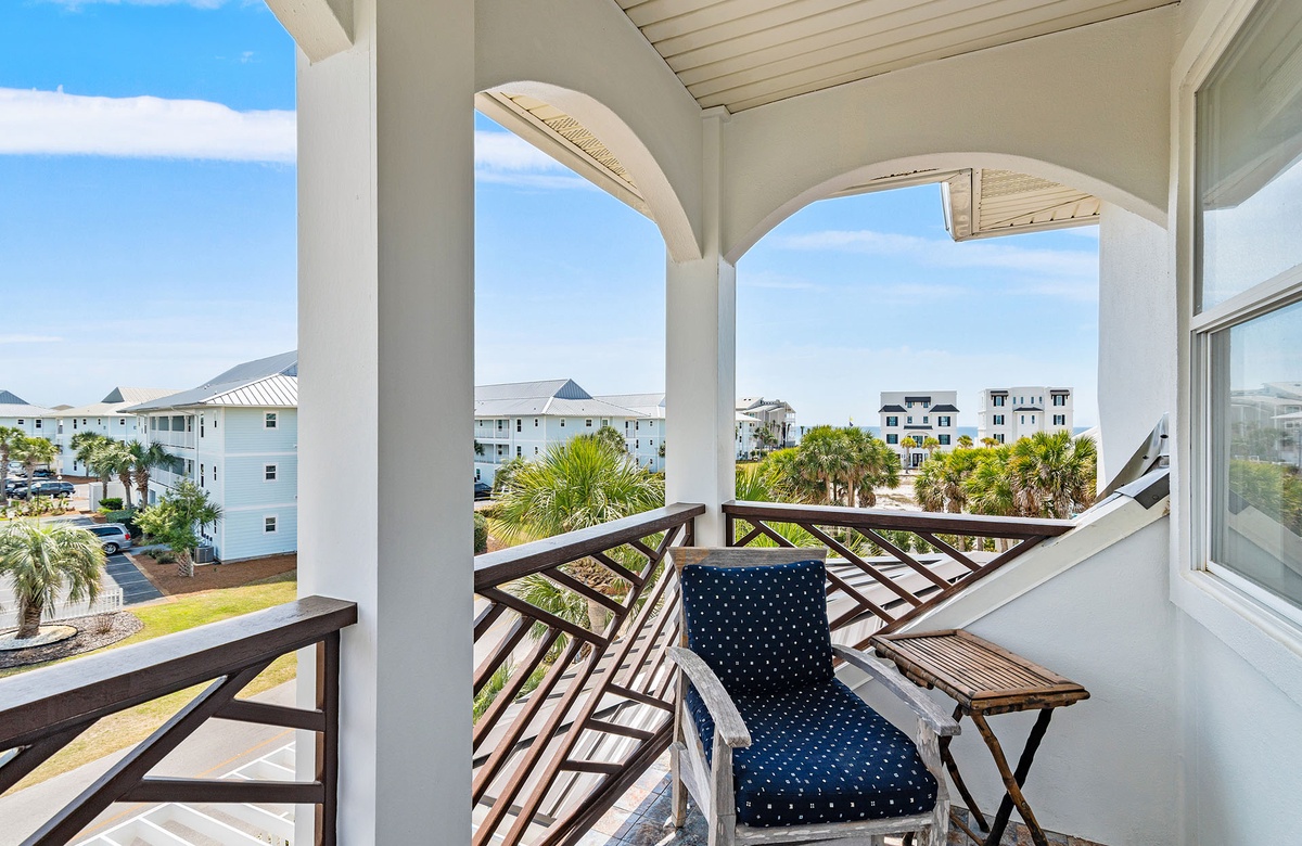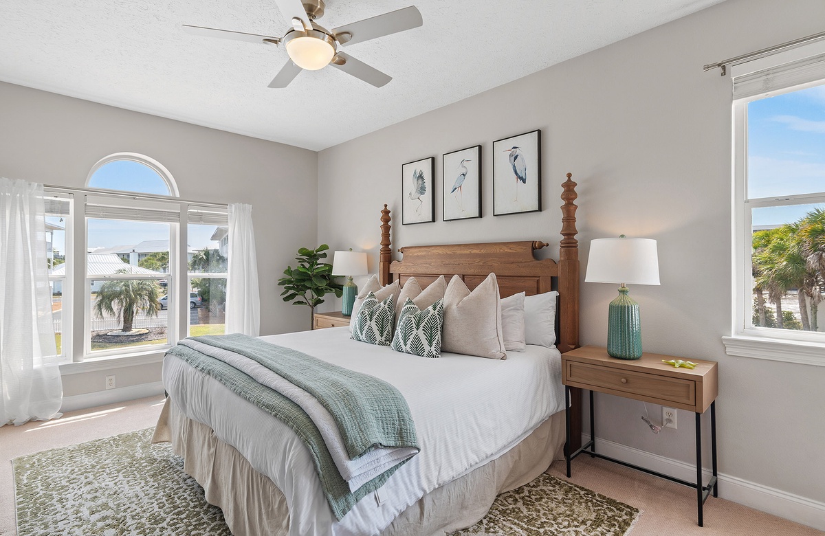 - King guest bedroom with private bath, partial gulf view