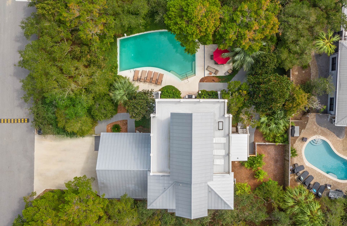 ‘Above the Dunes’ is a lovely 3400 square foot home located in the quiet, upscale community of Gulf Trace at Grayton Beach. It comfortably sleeps 9-14 with four bedrooms and four and a half bathrooms - two kings, one queen, one twin/full bunk, queen sofa sleeper and a futon for one person. This property boasts a gourmet kitchen with gas stove and under counter ice maker. Off the living area is a 1/2 bath and a screened porch overlooking the large private pool (37' x 25' and 3-6 ft. deep).