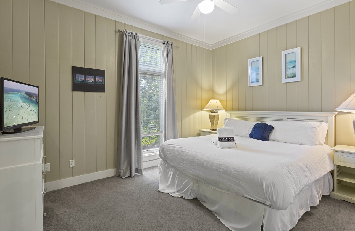 - King bedroom with TV, private bathroom (shower only)