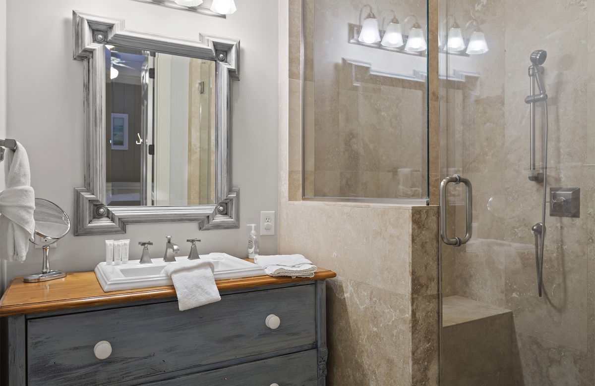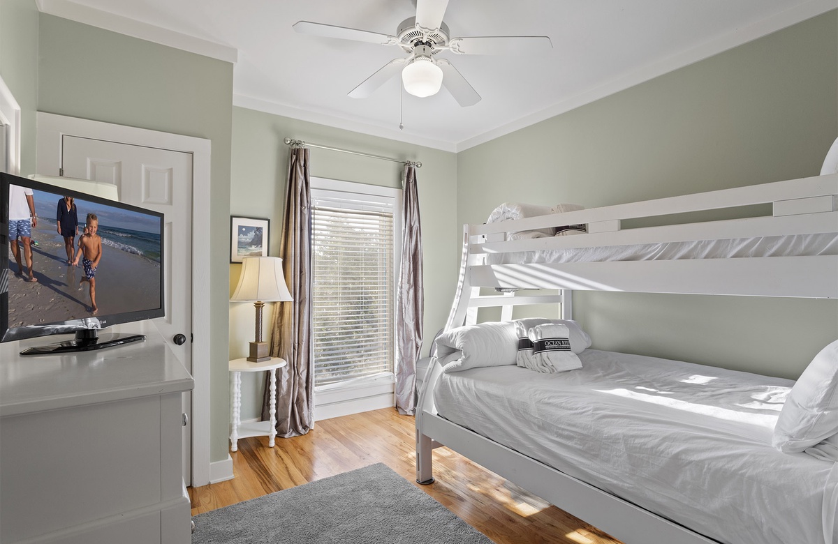 - Twin/full bunk room with TV, private bathroom (shower only)