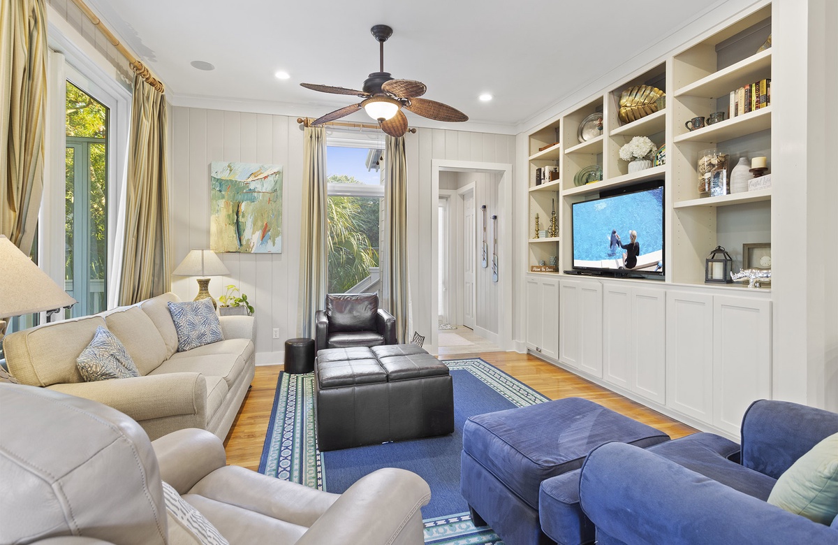 - Living room with large flat screen TV, sofa sleeper