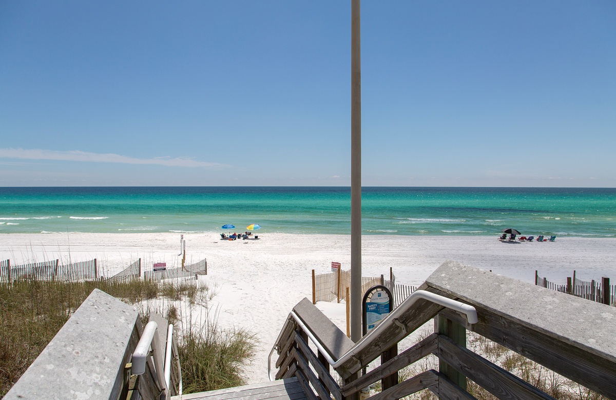 Another perk of booking a stay at this condo is its convenient 30A location. The soft, snow-white sands and jeweled-toned gulf waters are less than a five-minute stroll from the property. Popular restaurants like Shunk Gulley Oyster Bar and Vue on 30A are within close proximity. At the nearby Gulf Place town center, you can explore eateries, beach shops, art galleries, and events at the outdoor amphitheater. A beach access with restroom facilities and parking is located across the street from the town center. Further down the road, you’ll come to Blue Mountain Beach, Grayton Beach, Seaside, and the remaining beach towns that dot Scenic 30A. Shop, dine, and explore to your heart’s content in this little slice of paradise to truly make beach memories that will last!