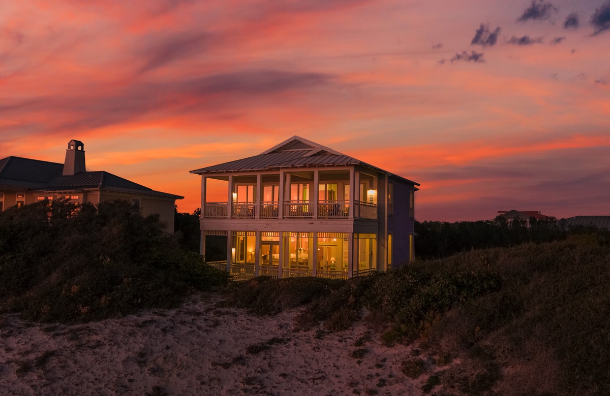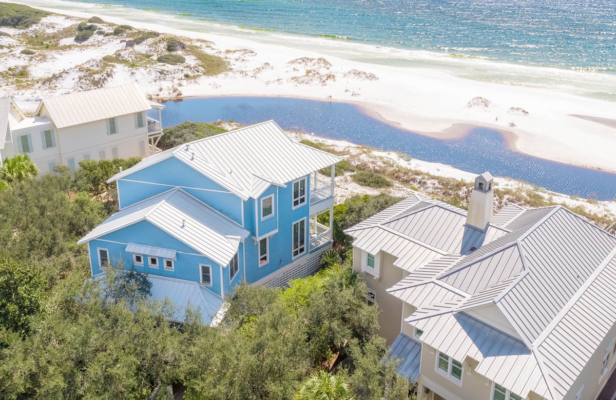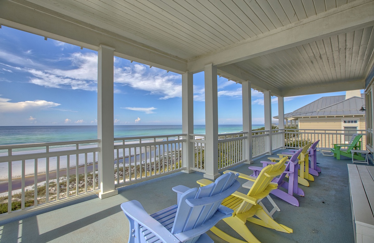 This stunning 5 bedroom, 5 ½ bath beach house sleeps 14 with two kings, two queens, and two twin/full bunks. Unique amenities are unending in this Gulf front home located in the quiet, gated community of Old Florida Beach. Surrounded in the luxury of custom wood, glass, marble, and lighting, you'll feel as though you're in beach heaven. The open living area includes an entertainment den with 50"TV with Blue Ray DVD player and HD box, and 30 foot windows to take in the breathtaking views of the Gulf. From the porches off the main living room and two master suites with adjoining master baths on the top floor, the gorgeous views will mesmerize.