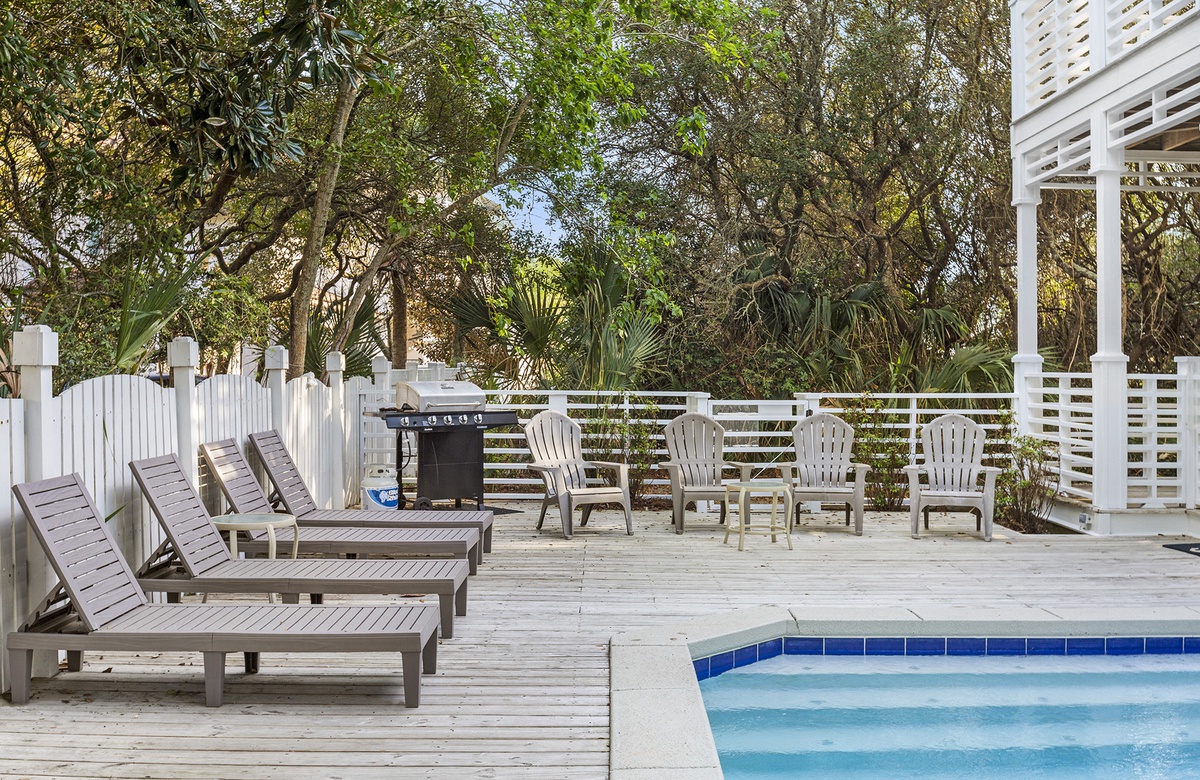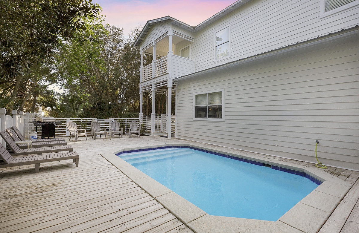 Relax by the private pool (approximately 17 'x 11') that can be heated at a cost of $50/day during the off-season. The pool is conveniently located just off living/dining area. This great beach house is only about 30 yards to the private beach access and just minutes from numerous dining and shopping amenities. Once you arrive on the shore, enjoy 2 complimentary beach setups (4 chairs / 2 umbrellas) provided seasonally.
