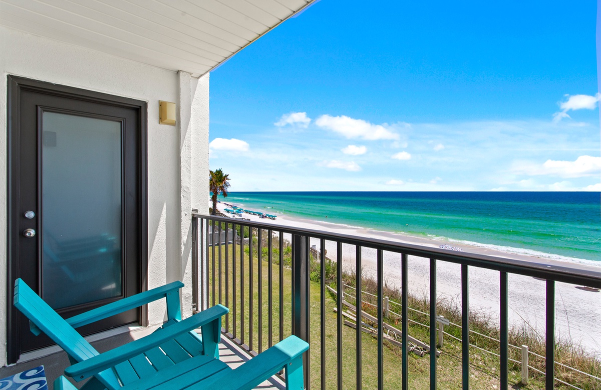 Kicking it beachside! Beachside Condo 7 is a picture-perfect vacation condo located in Seagrove Beach on Scenic 30A. This gulf-front condo boasts gorgeous views from sunup to sundown. With two bedrooms and two baths, it can entertain up to six guests. It’s the perfect hideaway for a small family vacation, romantic excursion, or fun trip with friends.