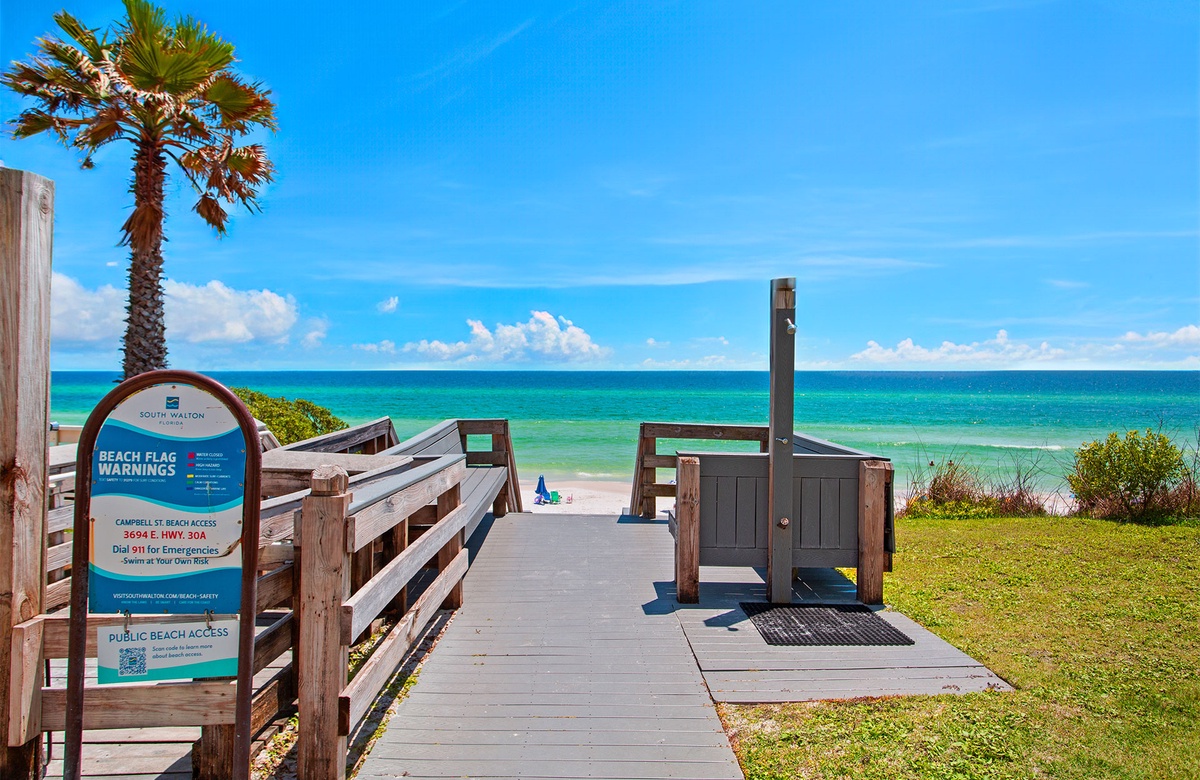 Another benefit of staying at this beachside vacation rental is its close proximity to cafes, restaurants, grocery stores, and other coastal amusements. Café Thirty-A, Angelina’s, The Perfect Pig, and Old Florida Fish House are just a few nearby eateries you will want to check out. Because of its prime Seagrove Beach locale, the property is perfectly situated midway along 30A. This means guests can easily explore the other coastal 30A beach towns like Seaside, Grayton Beach, WaterColor, Seacrest Beach, Rosemary Beach, and more. Be sure to stop by The Big Chill in Seacrest Beach for outdoor movie nights, great food, and tasty drinks. There are also popular wine bars, fashion boutiques, art galleries, dessert shops, outdoor concerts, seasonal festivals, events, and much more very close by to create a vacation experience you’ll never forget!
