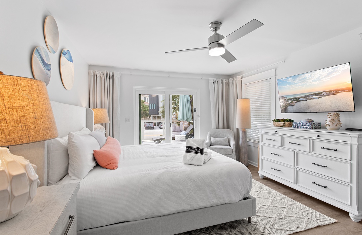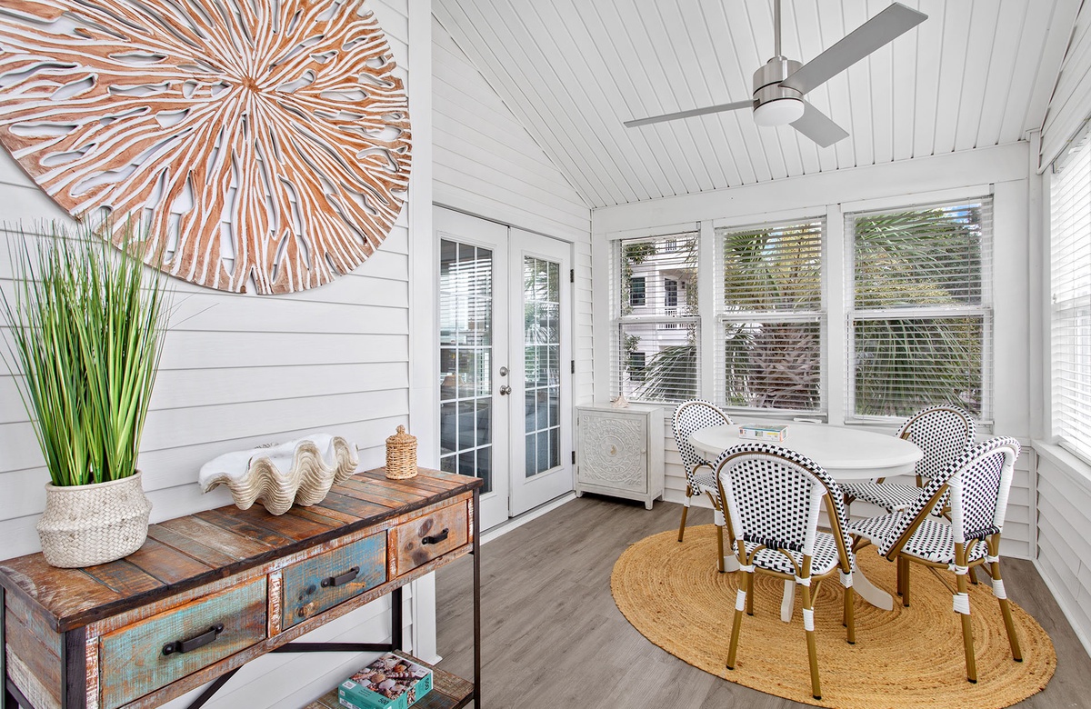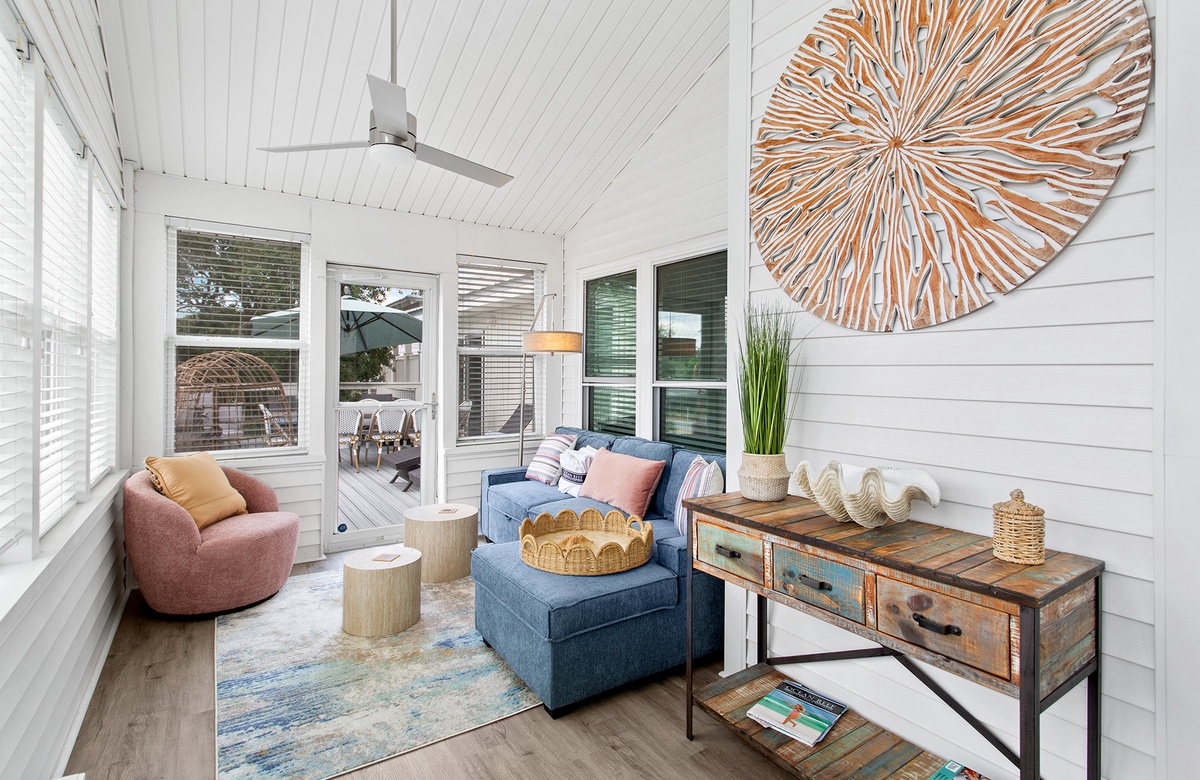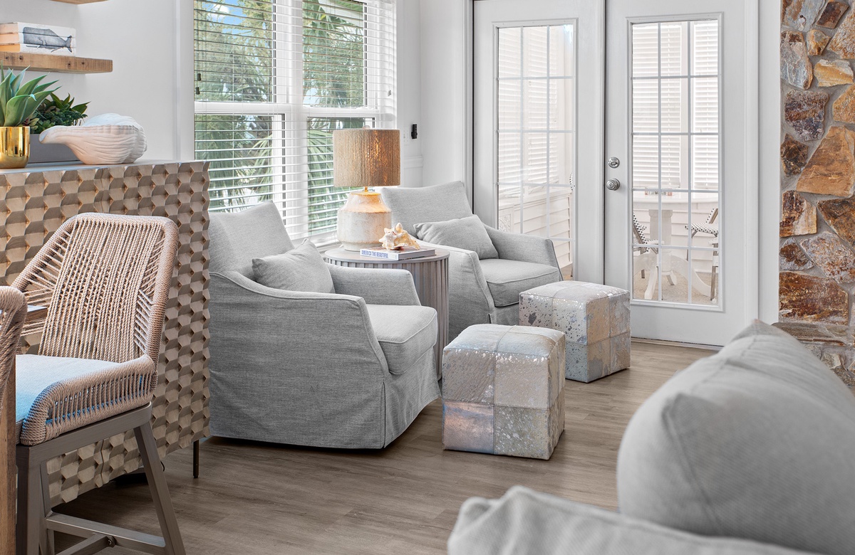 The bungalow’s location in Seacrest Beach puts the very best of Scenic 30A right at your doorstep. Just a short stroll—or a breezy ride on the complimentary six-seater golf cart or beach cruisers—takes you to the sugar-white sands and jewel-toned Gulf waters. Nearby, two rare coastal dune lakes, Camp Creek Lake and Deer Lake, offer incredible opportunities for paddleboarding, kayaking, and wildlife spotting in an environment found in only a handful of places in the world. Charming Rosemary Beach is just minutes away, where cobblestone streets, Dutch West Indies–inspired architecture, and a lively town square are filled with boutique shops, art galleries, and fine dining. Seasonal festivals, live music, fireworks, and lawn games add to the vibrant atmosphere, making every visit a new adventure.