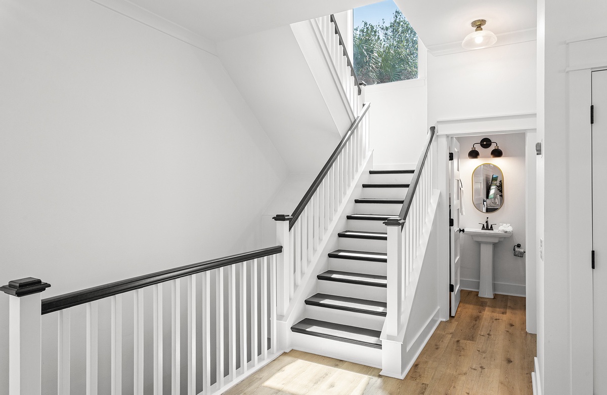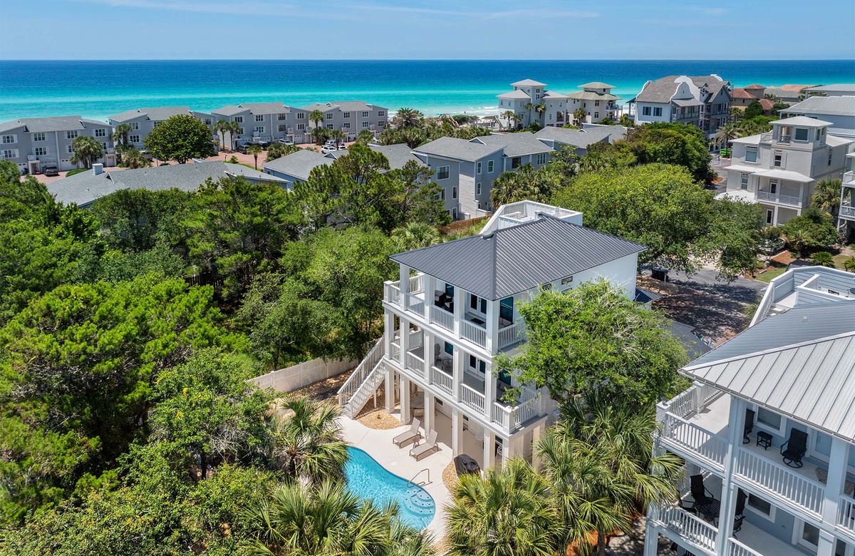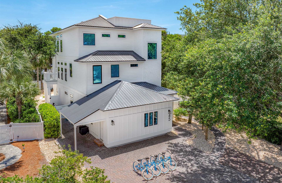 Welcome to The Blessed Home, a lovely three-story contemporary Old Florida-styled residence that comfortably accommodates up to fourteen guests in its six spacious bedrooms. This home is perfectly situated just a short stroll from the Spooky Lane neighborhood beach, south of Scenic 30A in Santa Rosa Beach. Its prime location places you within walking distance of the charming village center of Gulf Place, known for its vibrant outdoor amphitheater, restaurants, specialty shops, and art galleries. Complimentary bicycles make exploring the area even more convenient and enjoyable.