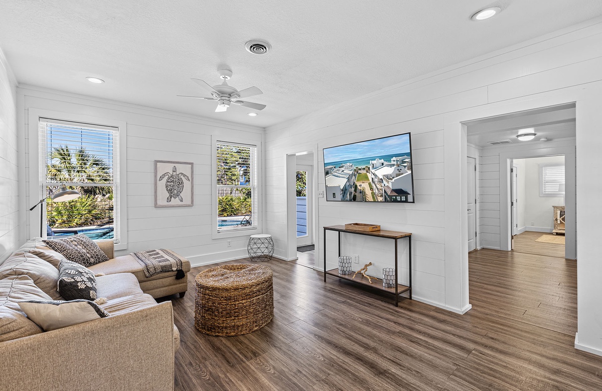 Welcome to Buddy Street Retreat, a stunning three-story vacation home nestled along Scenic 30A, just three blocks from the sugar-white sands of Santa Rosa Beach. Designed for unforgettable coastal escapes, this pet-friendly retreat comfortably accommodates up to 18 guests, making it perfect for large gatherings of family and friends.