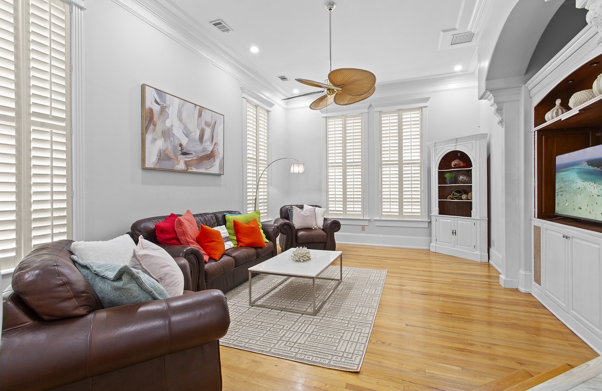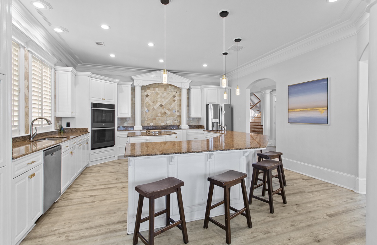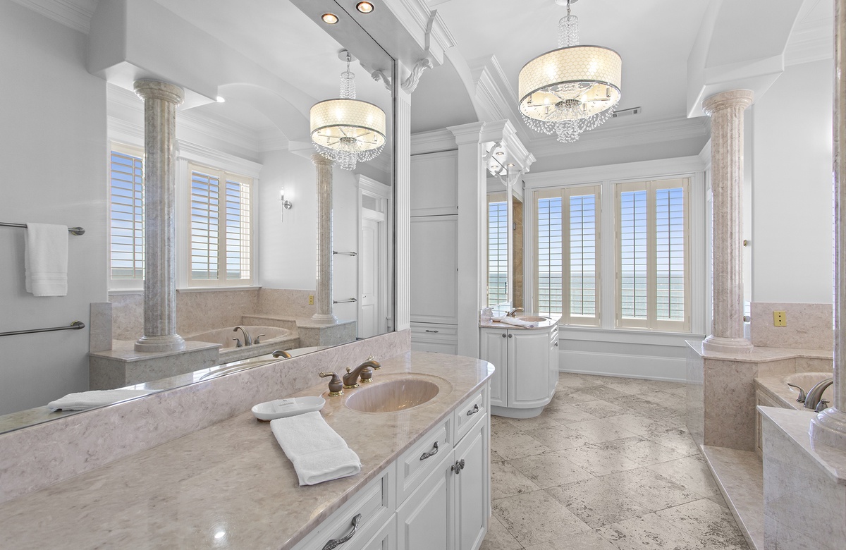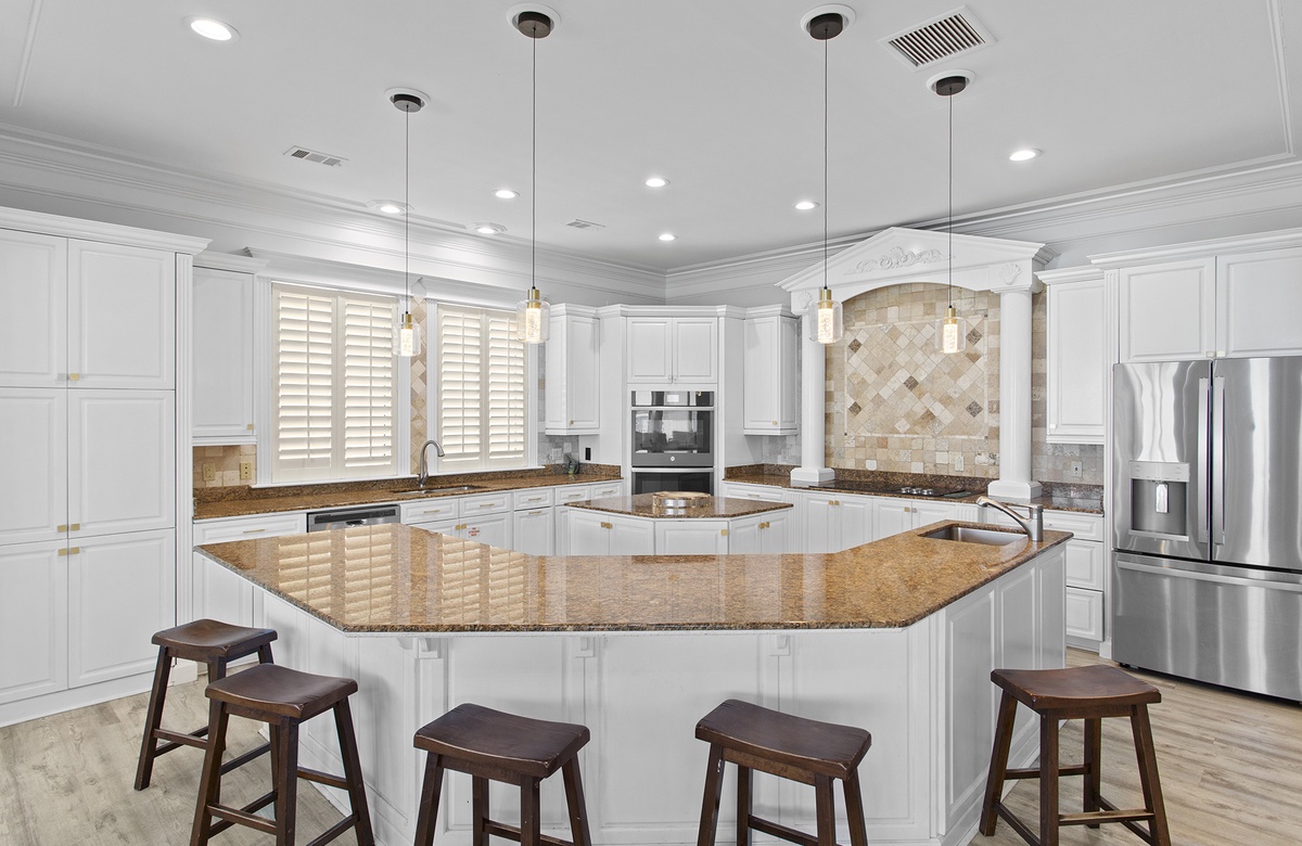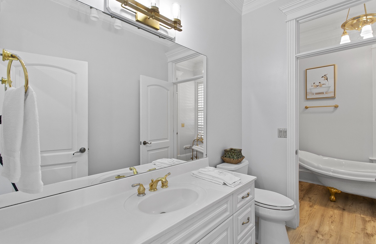 Second Floor: King Master Bedroom with Walk-In Shower and Soaking Tub + Balcony Access, King Bedroom with Queen Sleeper Sofa and Walk-In Shower + Soaking Tub, Bedroom with Two King Beds and Walk-In Shower.