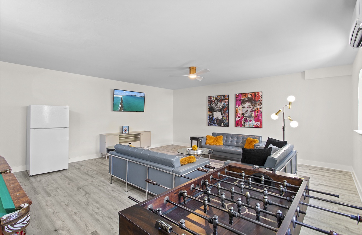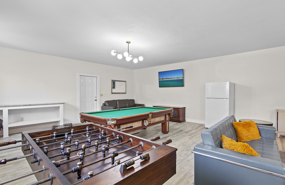 First Floor: Game Room with Pool Table, Foosball, and Bonus Den.