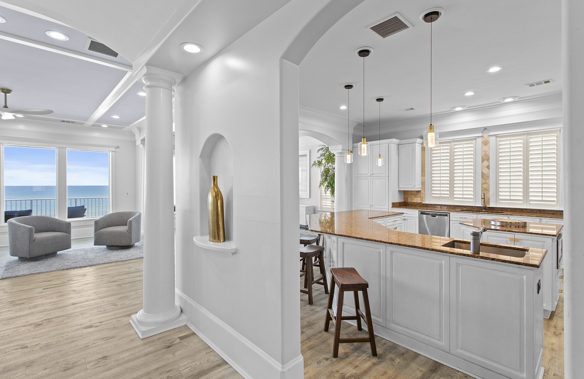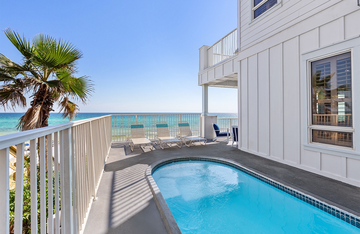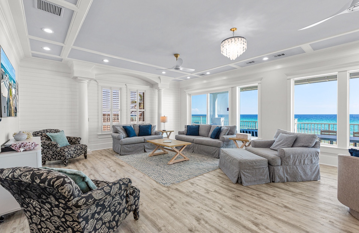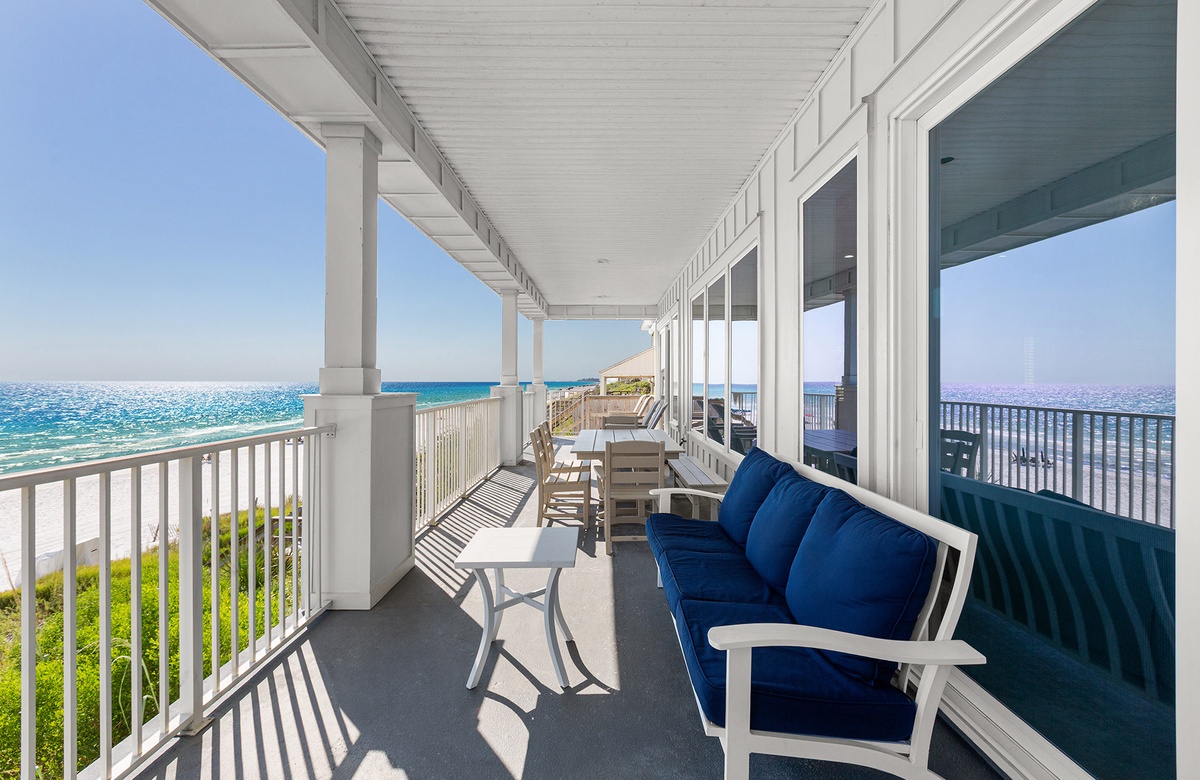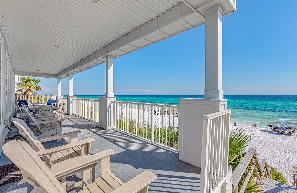 Casablanca is a spectacular gulf front home with 3 living rooms, 7 bedrooms, and 8 bathrooms. A wonderful beach home to make your lasting vacation memories. Enjoy the spacious decks and beach front pool deck with BBQ grill! Casablanca encompasses two homes (main and guest) with a sprawling 7,288 square feet there is enough room for the whole family to spread out! This is as good as it gets!