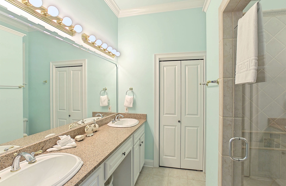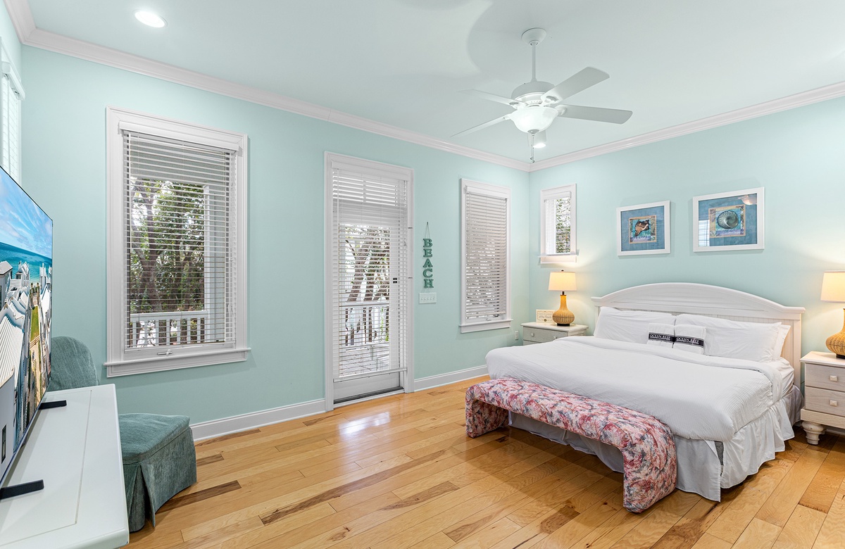 Second Floor: King Master Bedroom with Walk-In Shower and Balcony Access, Queen Bedroom with Walk-In Shower, Laundry.