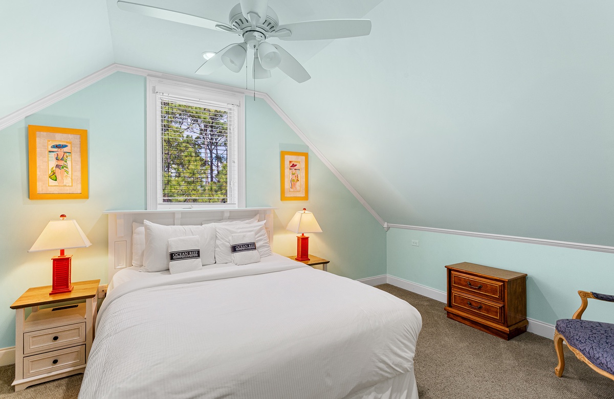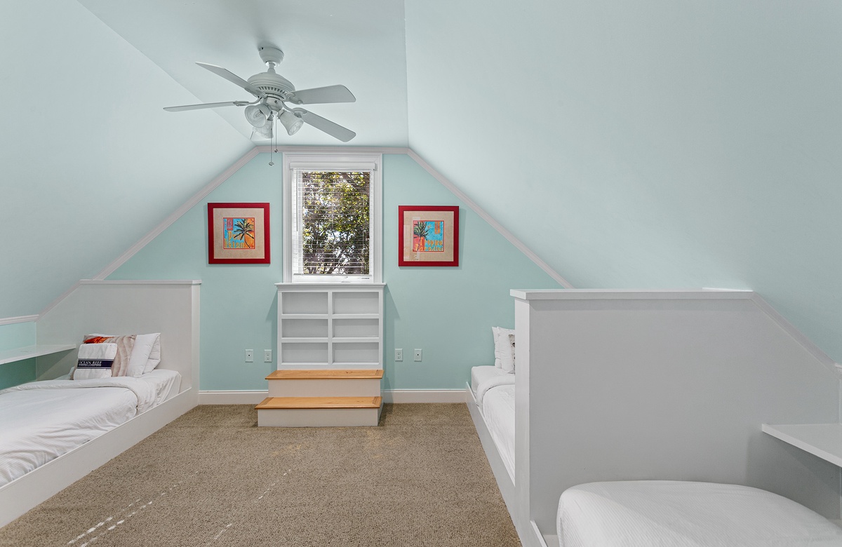 Third Floor: Bonus Den with Queen Sleeper Sofa and Balcony Access, Queen Bedroom, Hall Bath with Walk-In Shower, Bedroom with Three Twin Beds.
