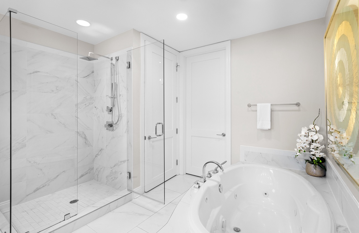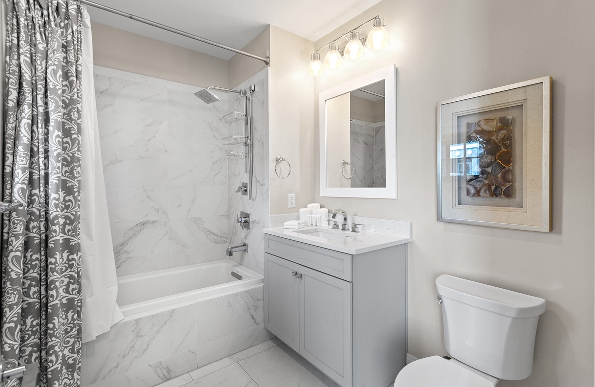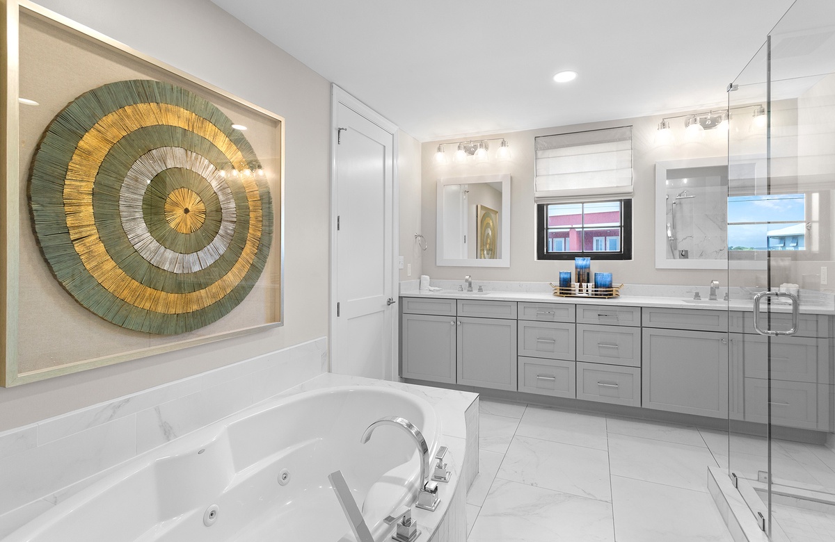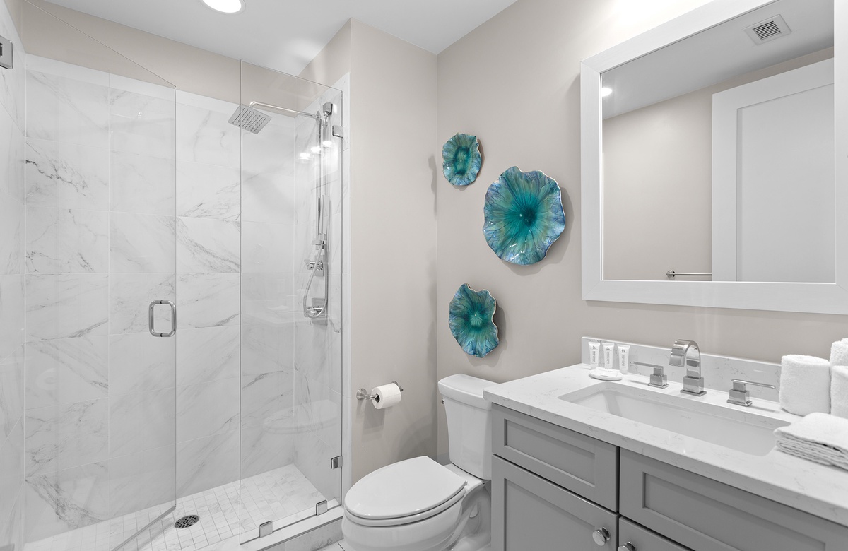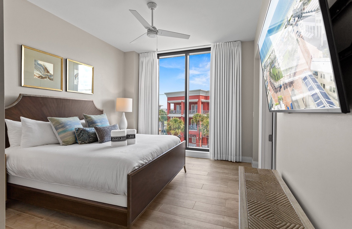 The spacious primary suite features a king-size bed, balcony access, and a spa- inspired ensuite bath with a soaking tub, walk-in shower, and dual vanities. Two guest rooms each include a queen bed and their own flat screen TV, while a fourth bedroom doubles as a media room with a queen-size sleeper sofa for added flexibility. Additional perks include a full laundry room, three beautifully updated bathrooms, high-speed Wi-Fi, and two parking spaces.