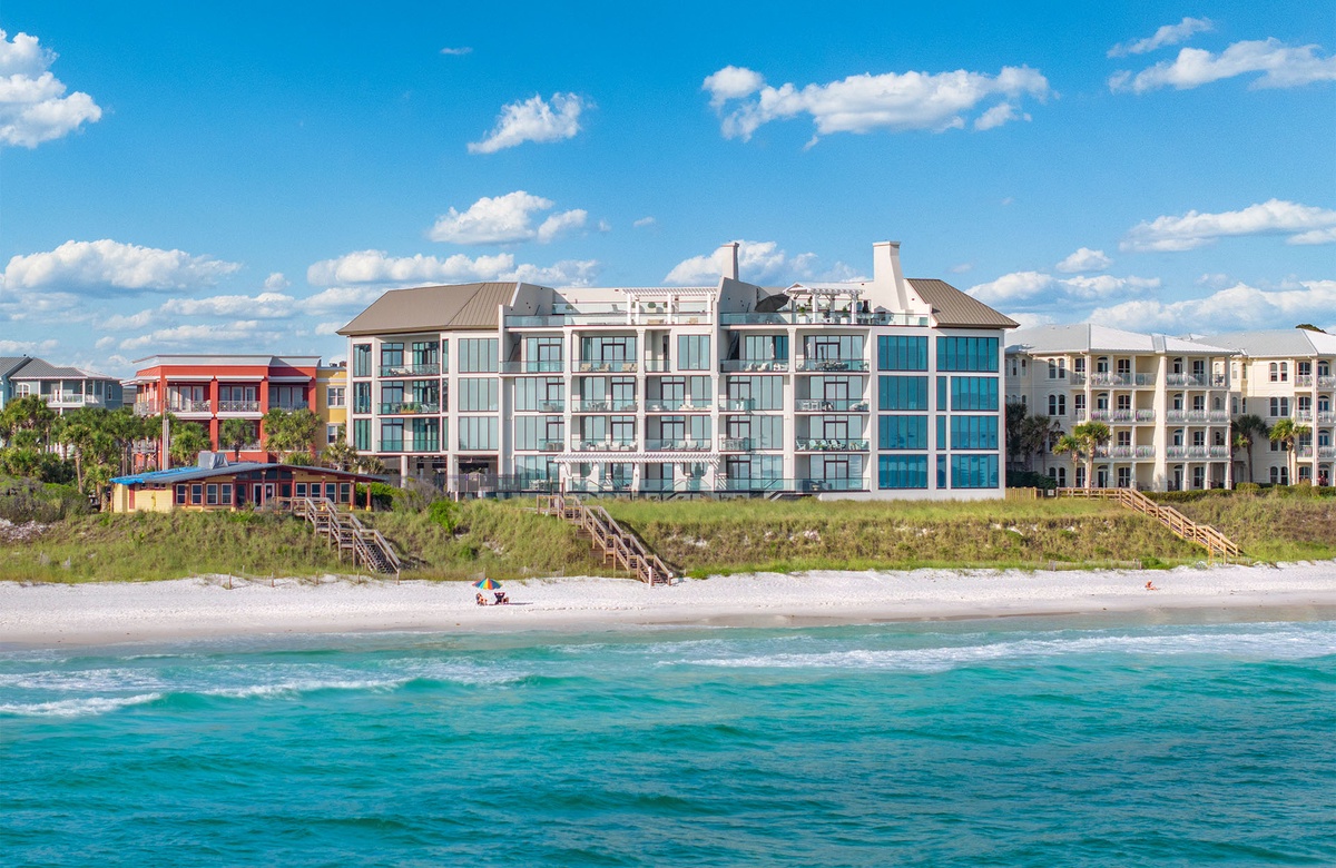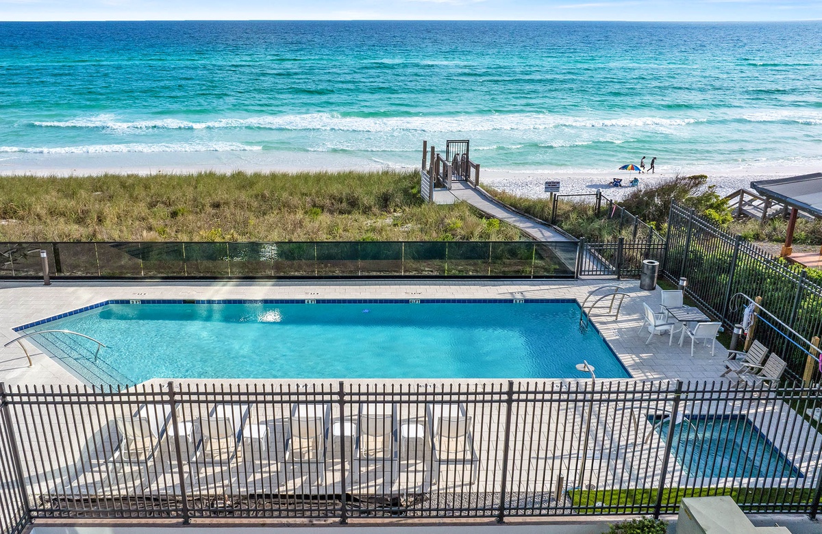 This exclusive beachfront building offers a boutique experience with only fourteen residences, private beach access, and high-end amenities in a\ serene setting. Guests enjoy an elevated Gulf-front pool and sun deck overlooking the dunes, a fully equipped fitness center, elevator access, and on-site parking. The private setting ensures a peaceful beach escape while still offering the luxury and convenience of resort-style living.
