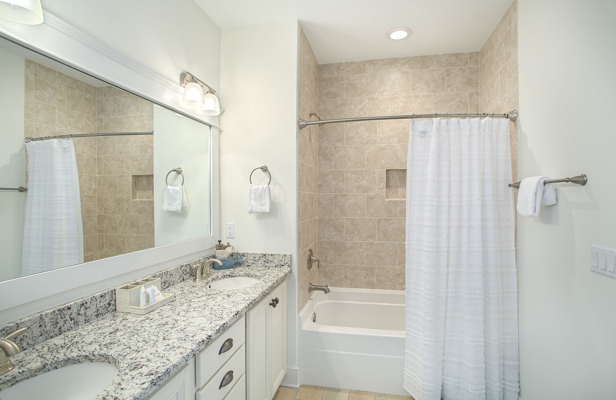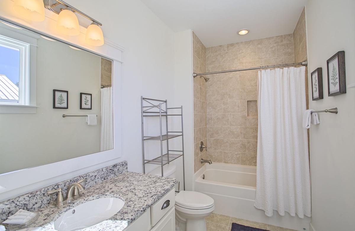 Second Floor: King Bedroom with Tub/Shower Combo, Queen Bedroom, Hall Bath with Tub/Shower Combo, Bunk Room with Full/Twin Bunk.