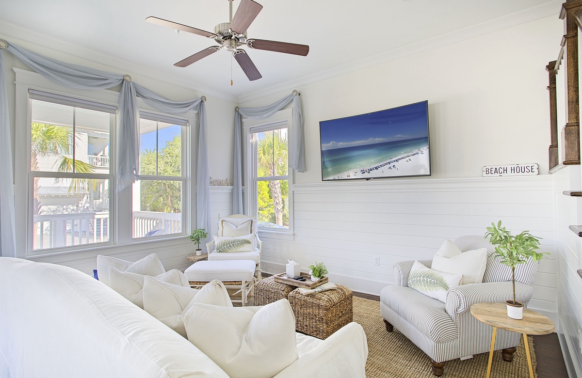 When you’re in the mood for coastal breezes and paradise beaches, there’s no better place to go than the beaches of South Walton. Experience your beach vacation to the fullest when you stay at Deja Blue. This two-story vacation residence is in the Highland Parks neighborhood of Blue Mountain Beach on Scenic Highway 30A. It combines southern charm with coastal luxury, just what you need for a relaxing beach getaway. With four bedrooms and three and a half baths, this vacation home can comfortably accommodate up to nine guests.