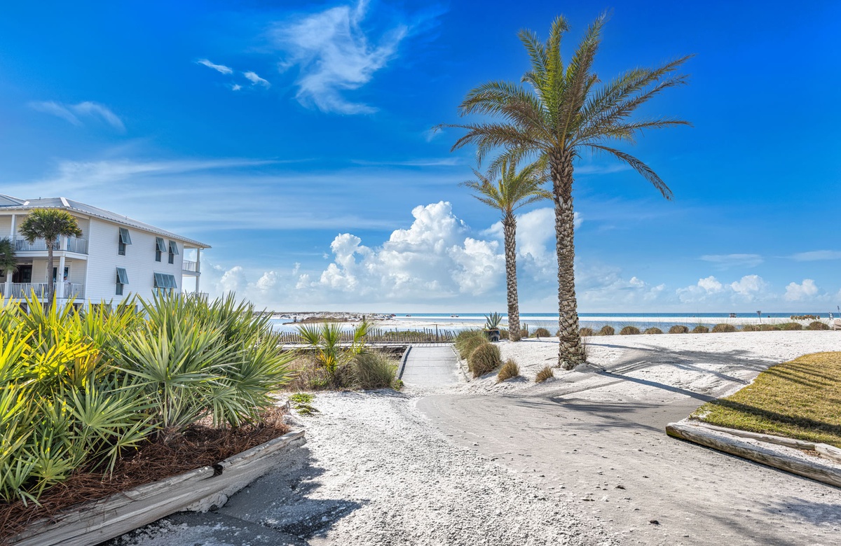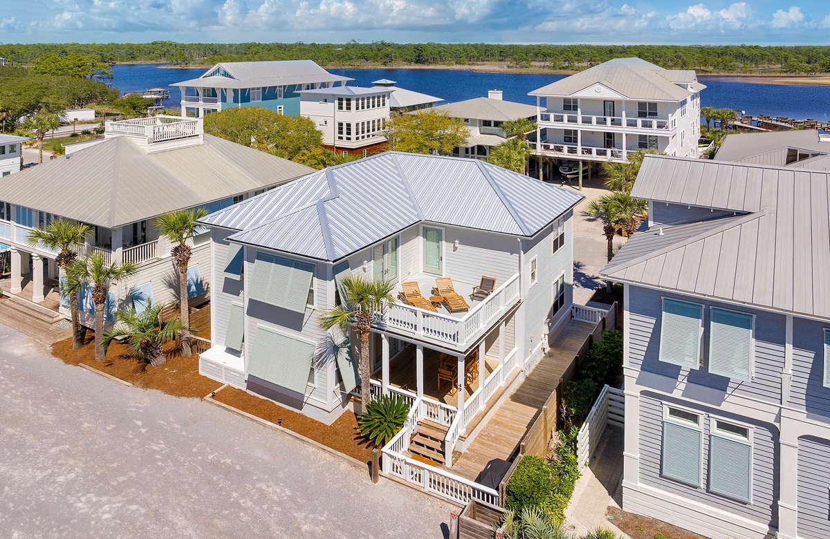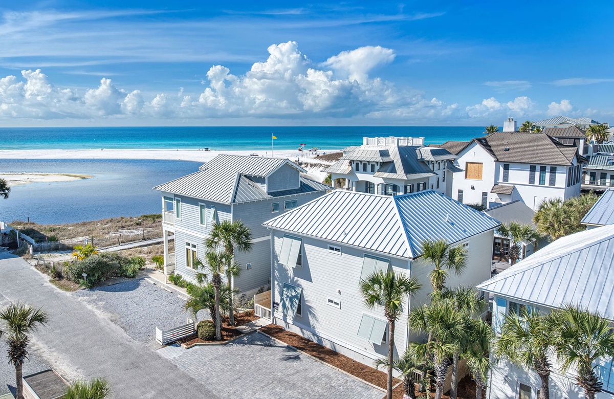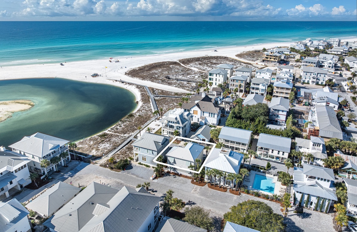 The home’s location within the neighborhood places you just moments from a scenic pathway leading toward the rare coastal dune lake and the sugar-white sand beyond. The easy walk to the beach is one of the features guests appreciate most, allowing spontaneous beach days, sunset strolls, and quick trips back home for lunch or a break from the sun. The surrounding cottages and quiet streets create a welcoming coastal atmosphere that feels both charming and peaceful.