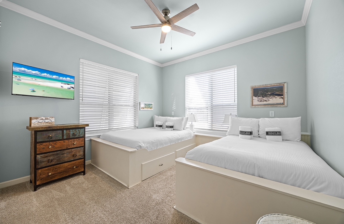 - Queen and Full bedroom with smart TV, full hall bathroom with walk-in shower
