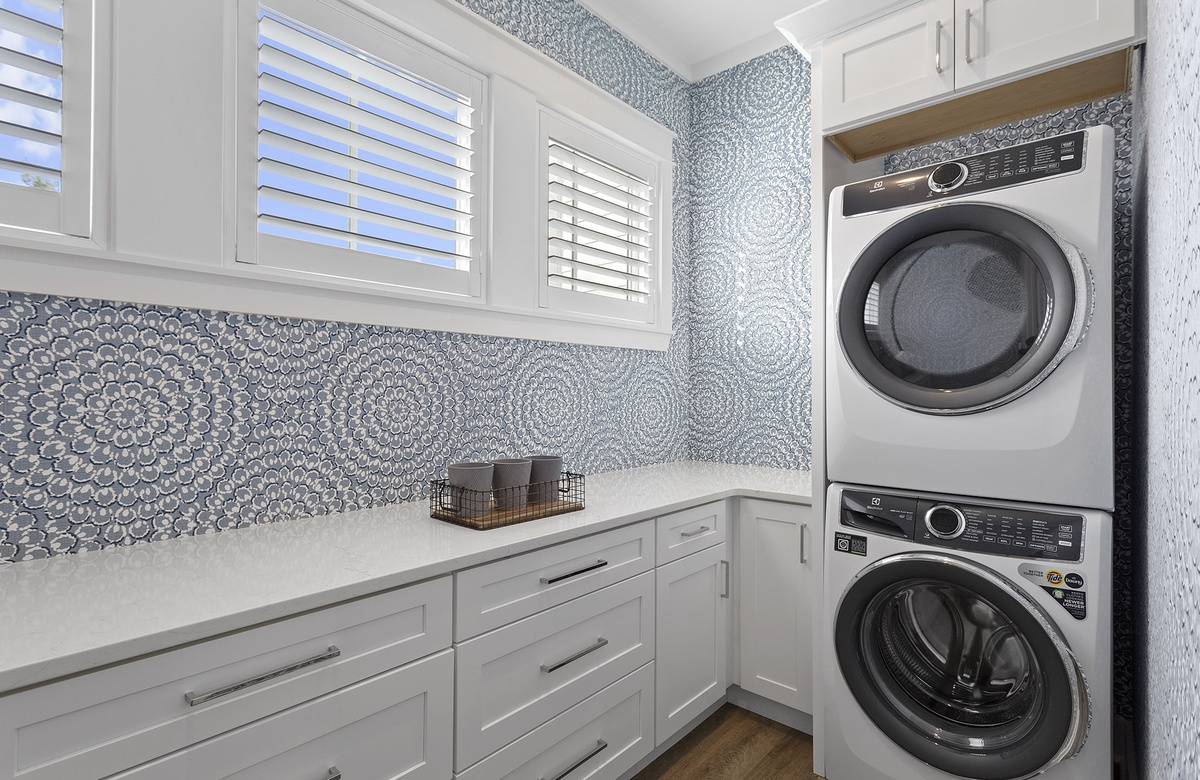 Second Floor: Living Room with Balcony Access, Kitchen, Dining, King Bedroom, Hall Bath with Tub/Shower Combo, Bunk Room with Two Twin Bunks and Two Twin Trundles, Powder Room, Laundry.
