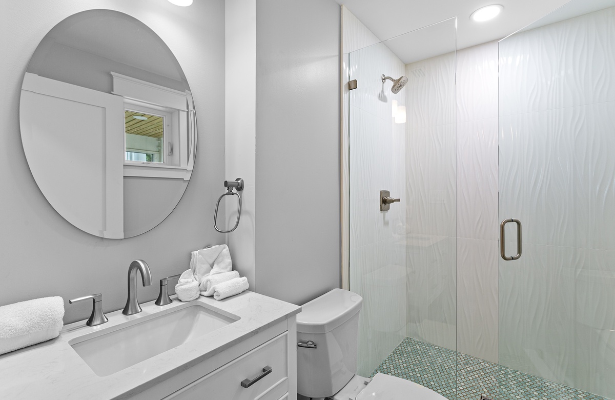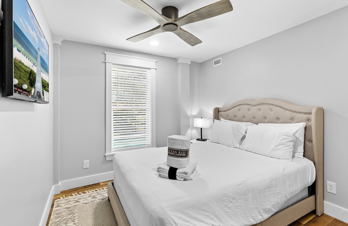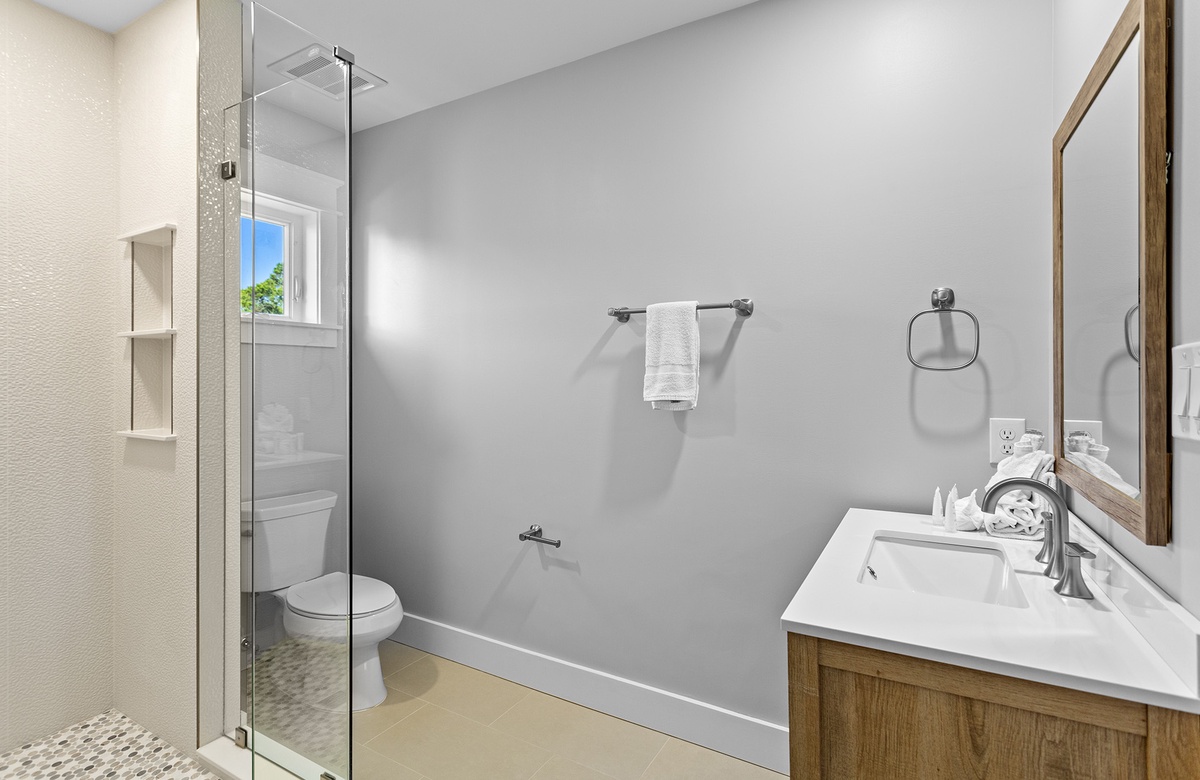 First Floor: Queen Bedroom with Walk-In-Shower.
