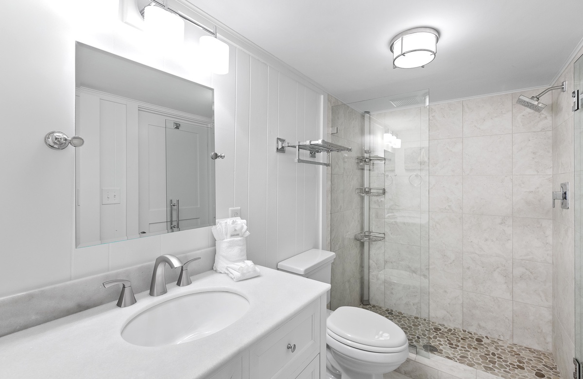 First Floor: Bonus Den with Queen Sleeper Sofa and Twin Day Bed, King Bedroom and Twin Sleeper Sofa with Shared Walk-In-Shower and Laundry, Kitchenette