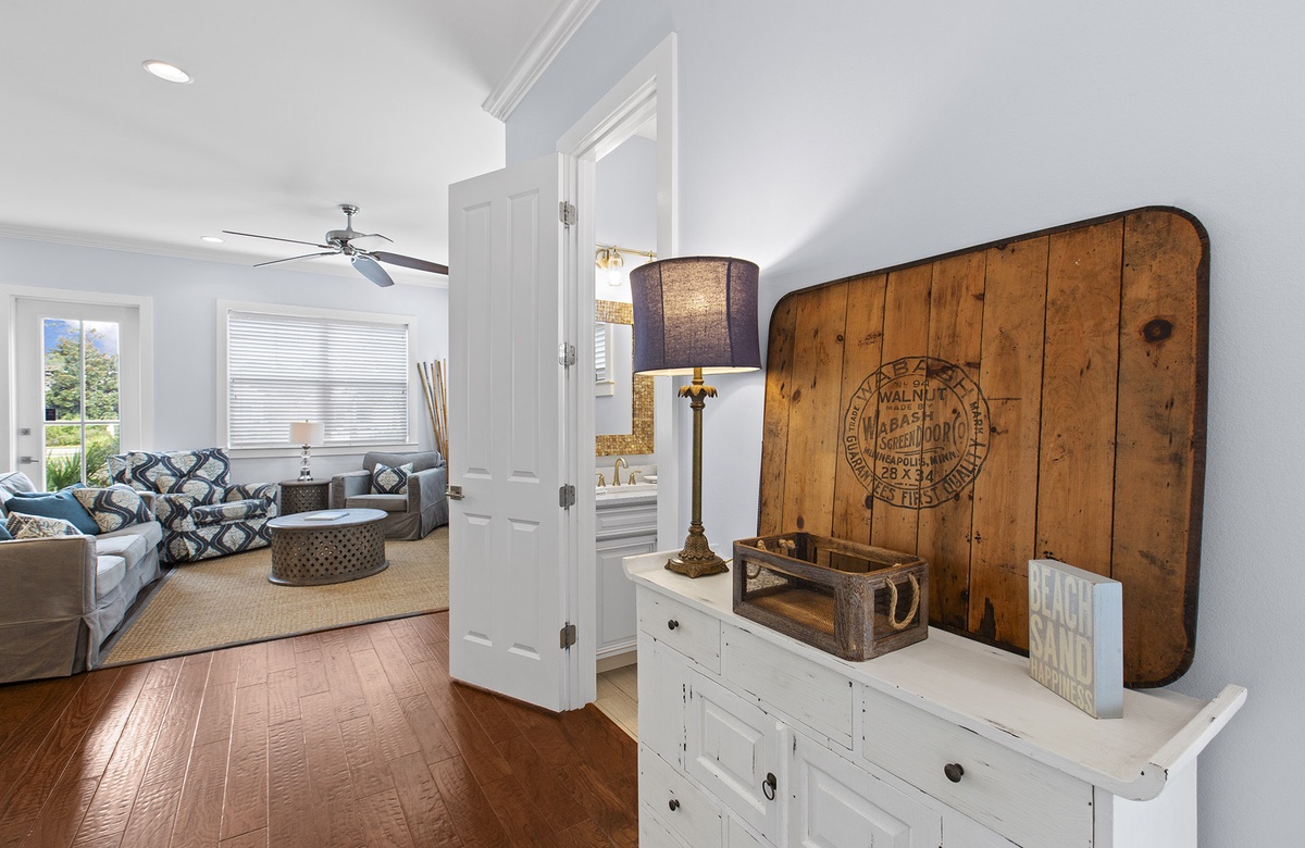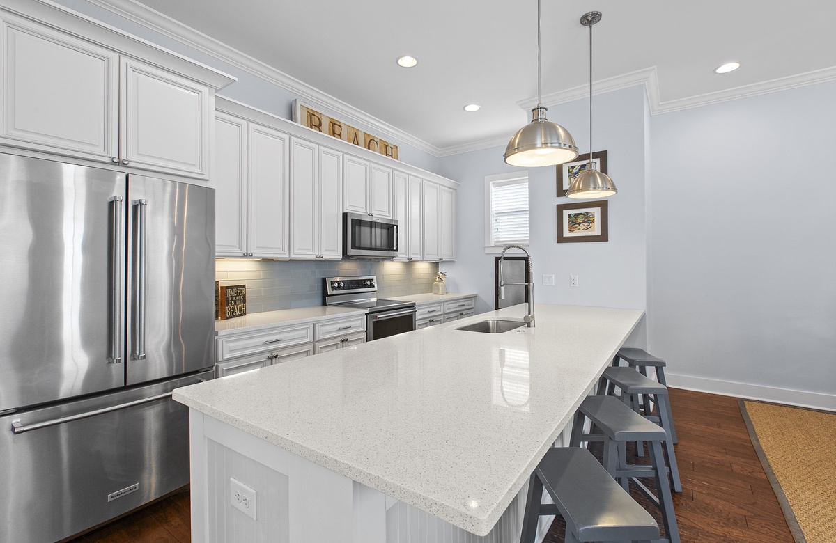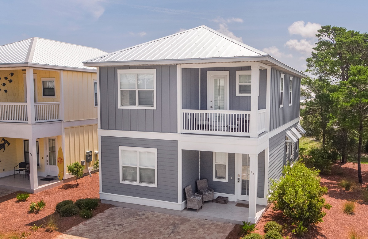 Gone Coastal is a brand new vacation rental located just off of 30A in Dune Allen Beach. This beautiful two story beach house comes equipped with 4 bedrooms, 4.5 bathrooms, and can accommodate up to 11 lucky guests. The first floor has your main living area which is spacious and opens up into the dining room and the modern updated kitchen. The first floor also has one of the bedrooms with access to a full bathroom. You will find a staircase that leads up to the other three bedrooms. The Master Bedroom features a King Size bed and a full en suite bathroom and it also has its own private balcony. Another guest bedroom also contains a King Size bed. The fourth guest bedroom has a Queen Size bed and you will find a bunk room at the top of the stairs that has a sliding barn door entrance with a two sets of bunk beds perfect for the kids.