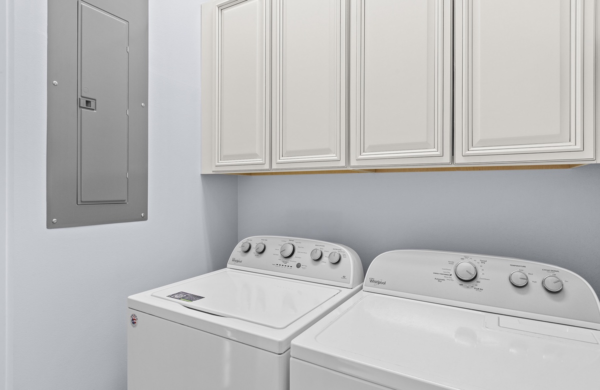 First Floor: Living Room, Kitchen, Dining, King Bedroom with Full Bath and Walk-In Shower, Powder Room, Laundry.