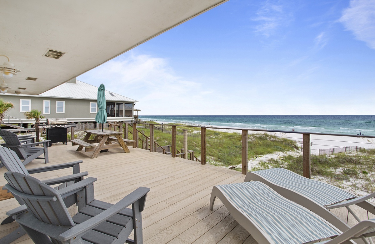 The best part about staying in a beach house during vacation? Getting to enjoy stunning views before you drift off to sleep and when you wake up! Goodnight Dune is a Gulf-front home located in Scenic Highway 30A’s Dune Allen Beach that has incredible views—the kind you can’t get enough of morning and night. This vacation home has four bedrooms, two baths, an open floorplan, a wraparound balcony, private beach access, and views of the beach and Oyster Lake. It can entertain up to ten Emerald Coast vacationers.