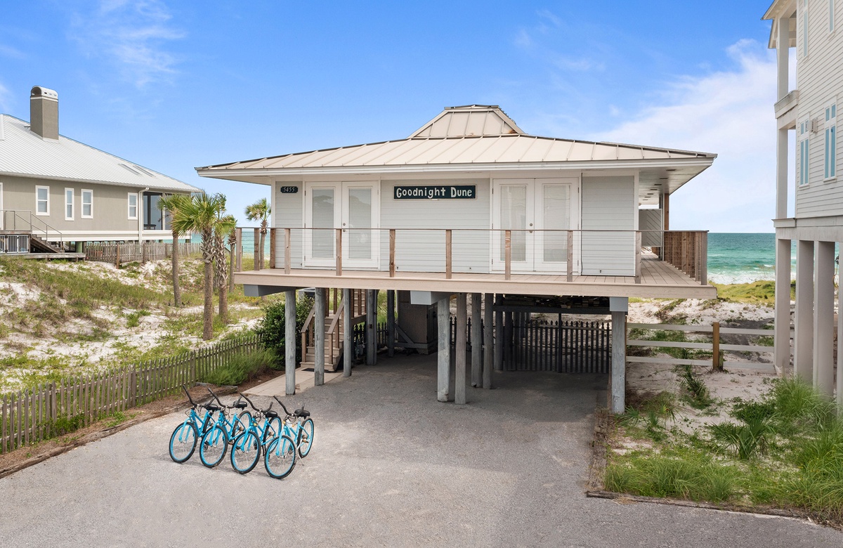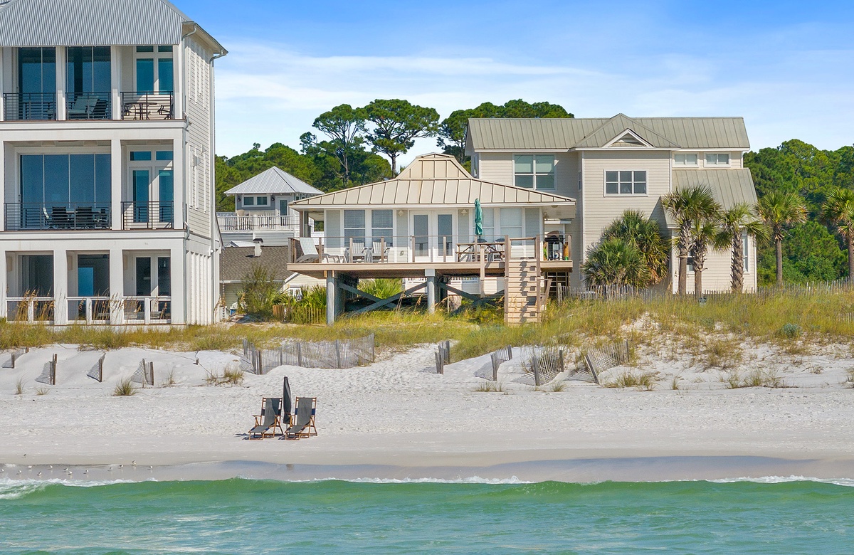 When you book a stay at this Dune Allen beach home, you get to enjoy all the conveniences that this community has to offer. First of all, the home itself has a walkover that leads directly to the crystalline beach. You can find yourself lounging on the sand or soaking in the emerald waves seconds after leaving the house. Oyster Lake is also only a short distance away, where vacationers can spend time fishing, paddle boarding, kayaking, or simply enjoying the scenery. Gulf Place is a nearby village center with restaurants, galleries, and shops, as well as a grassy, open-air amphitheater that hosts seasonal outdoor concerts and festivals. Other villages on 30A offer all kinds of restaurants, bars, boutiques, art galleries, and recreational activities that can elevate your beach vacation.
