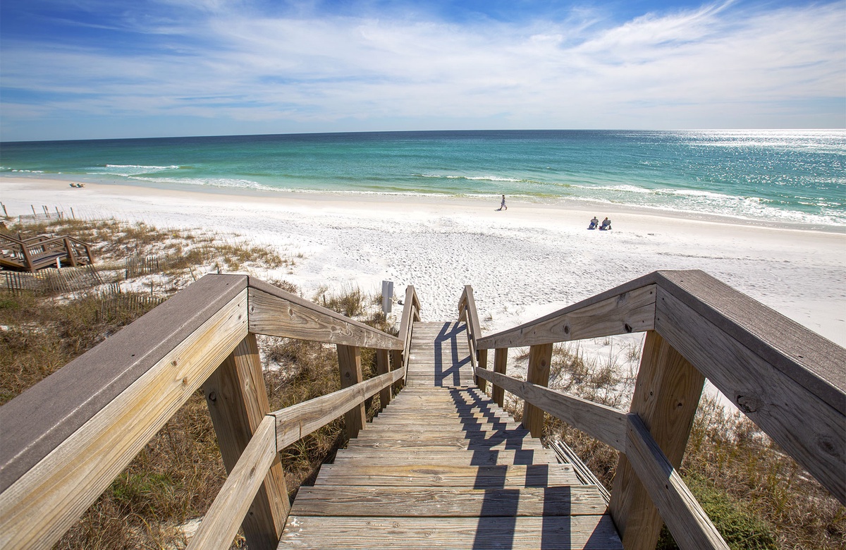 Visitors of the Grand Isle will enjoy a variety of amenities provided by the condo complex. These include a sparkling community pool, complimentary bikes, and convenient access to the private beach. Additionally, the condo is located near various restaurants and specialty shops in both Seagrove and other communities along 30A. The laidback Perfect Pig Grill is right there for your culinary enjoyment. Other nearby restaurants include the chic Café Thirty-A, Angelina’s Pizzeria and Pasta, and Mi Casita Mexican Grill. Head east or west along 30A, and you’ll run into other unique beach communities, all with their own brand of coastal fun.