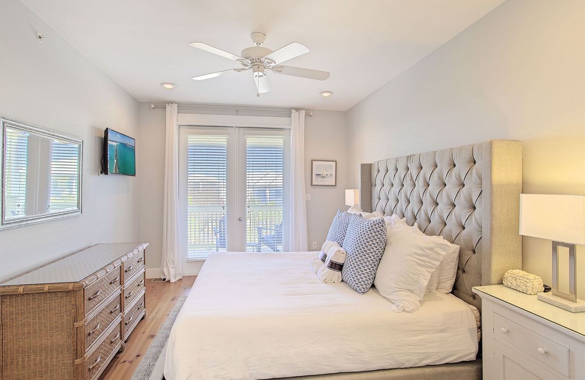 All One Level: Living Room with Queen Sleeper Sofa and Balcony Access, Kitchen, Dining, King Master Bedroom with Walk-In Shower and Balcony Access, Queen Bedroom, Hall Bath with Tub/Shower Combo, Twin Bunk Room, Laundry.