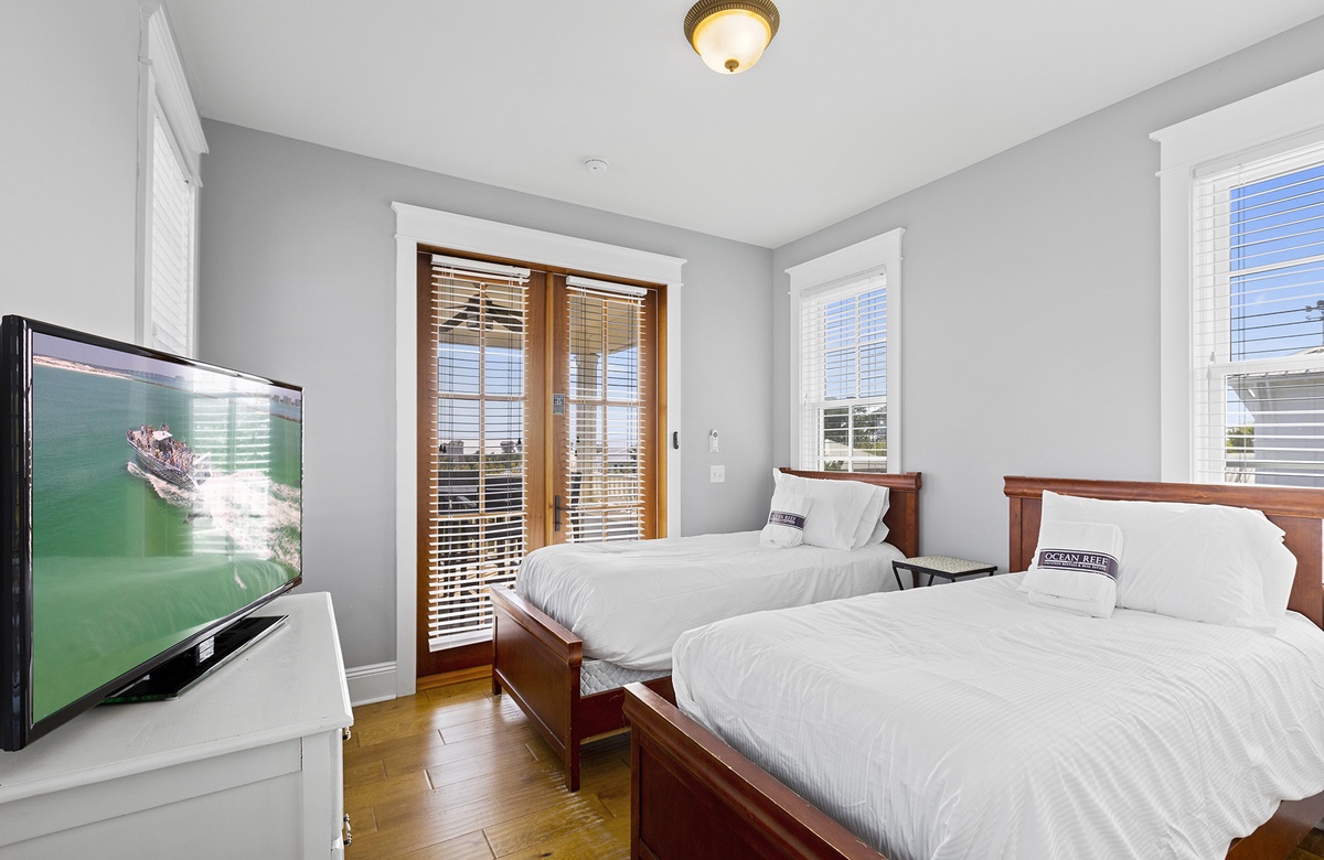 Third Floor: Bedroom with Two Twin Beds and Balcony Access, Wet Bar with Sitting Area.
