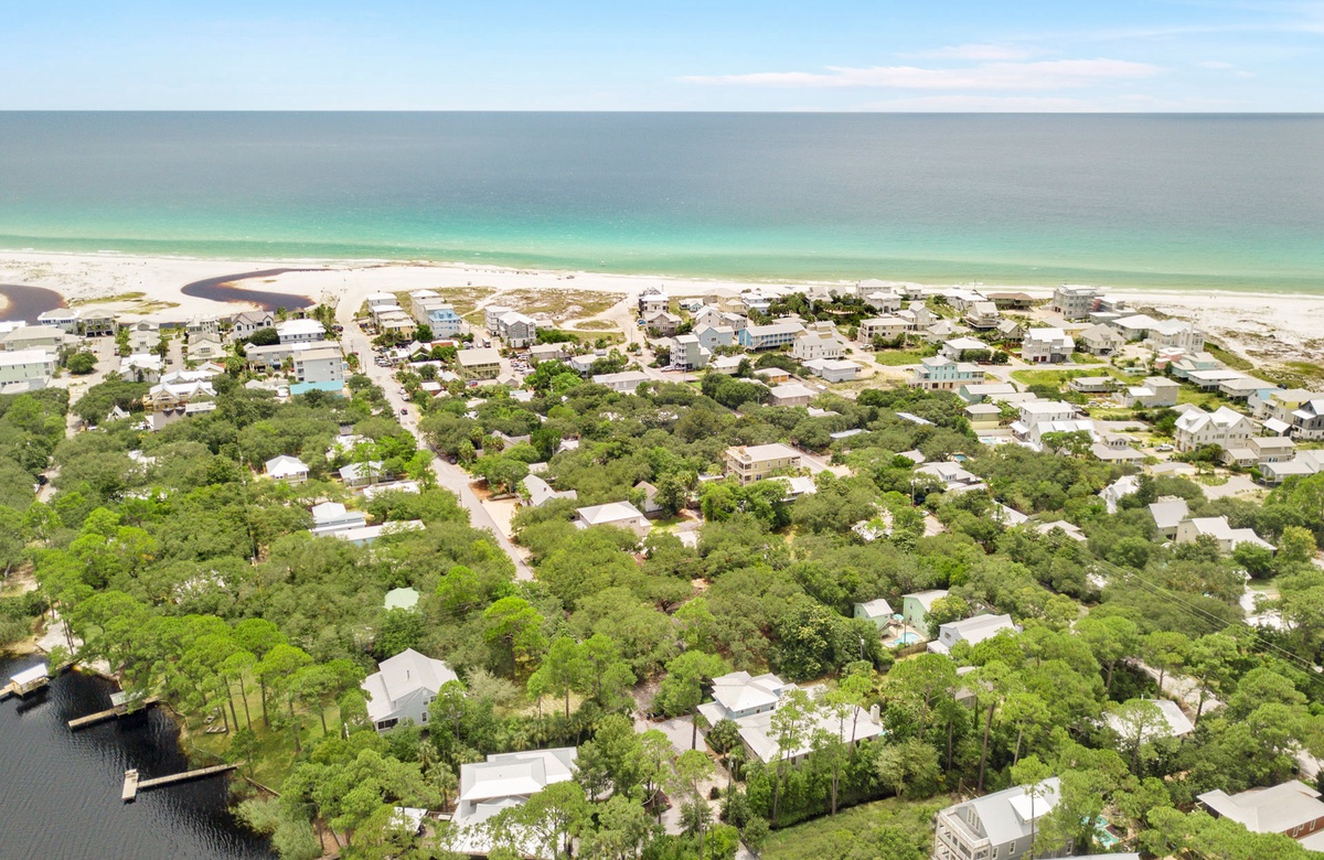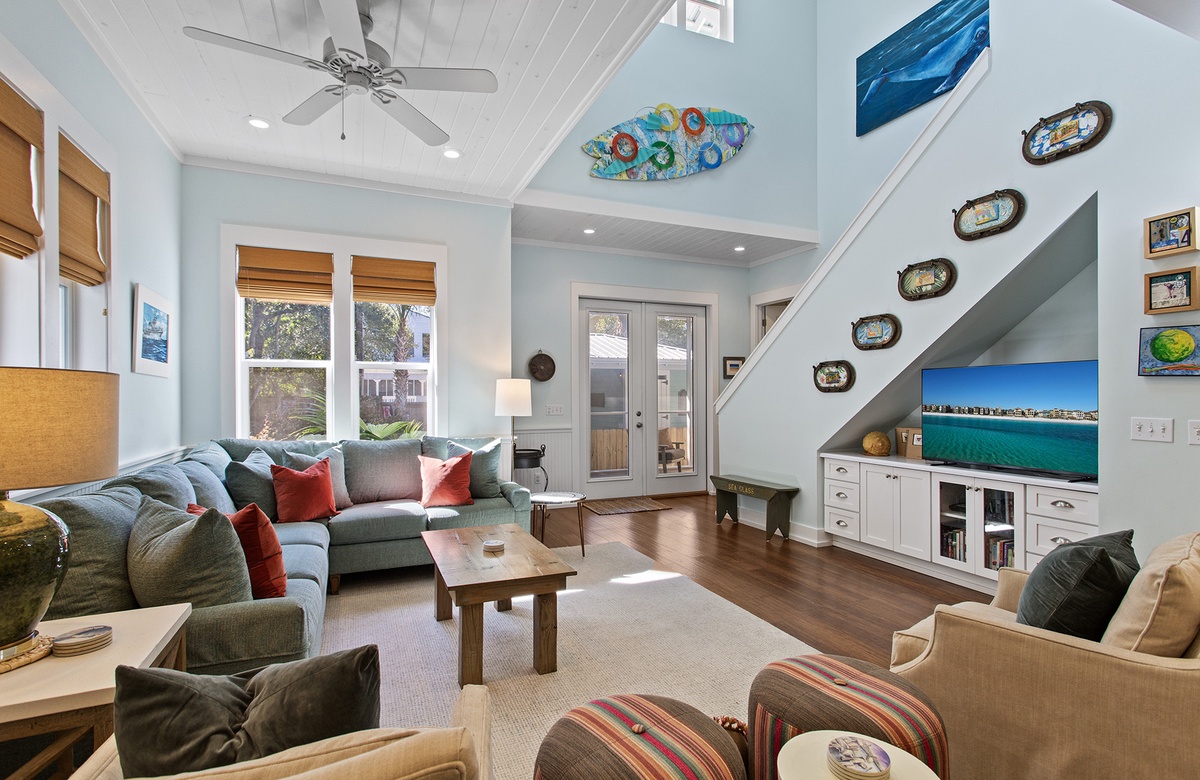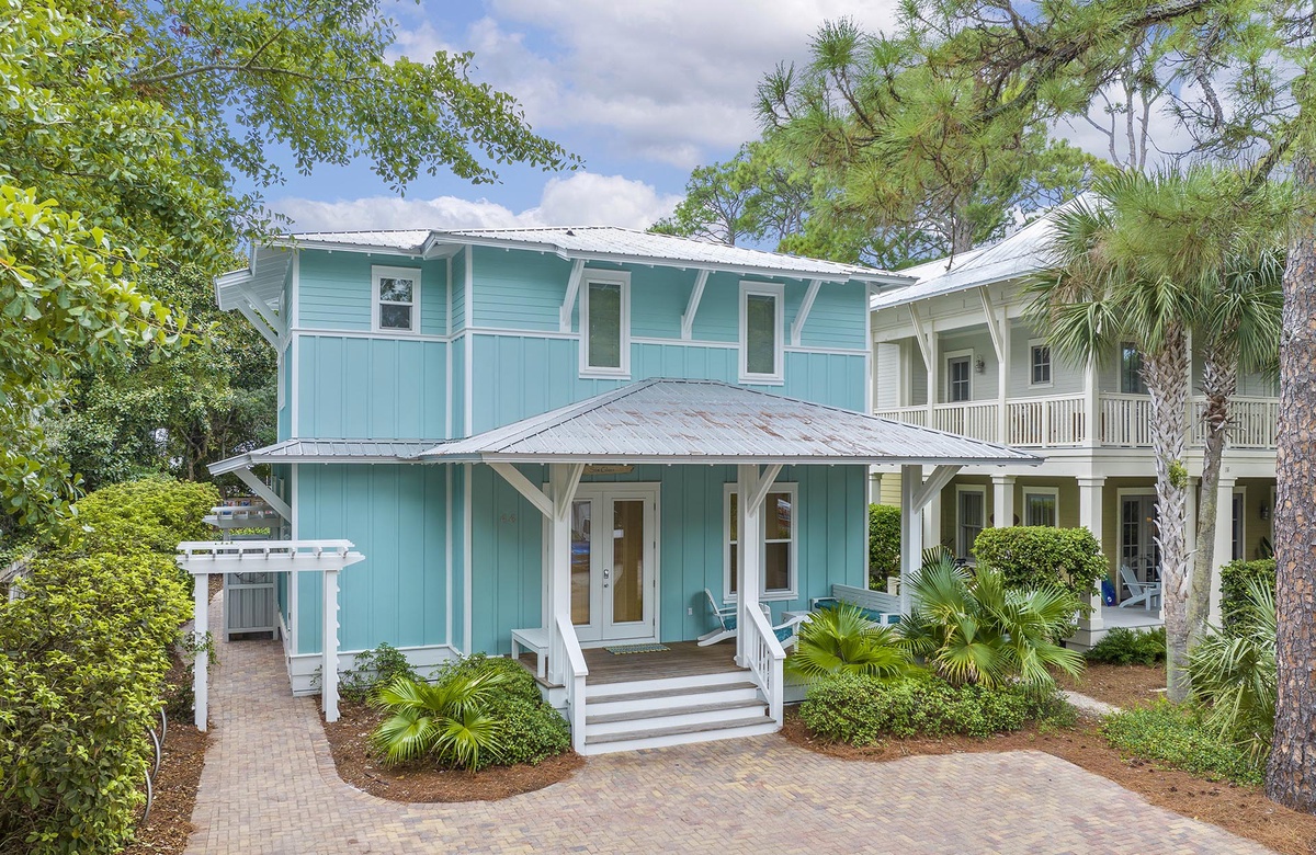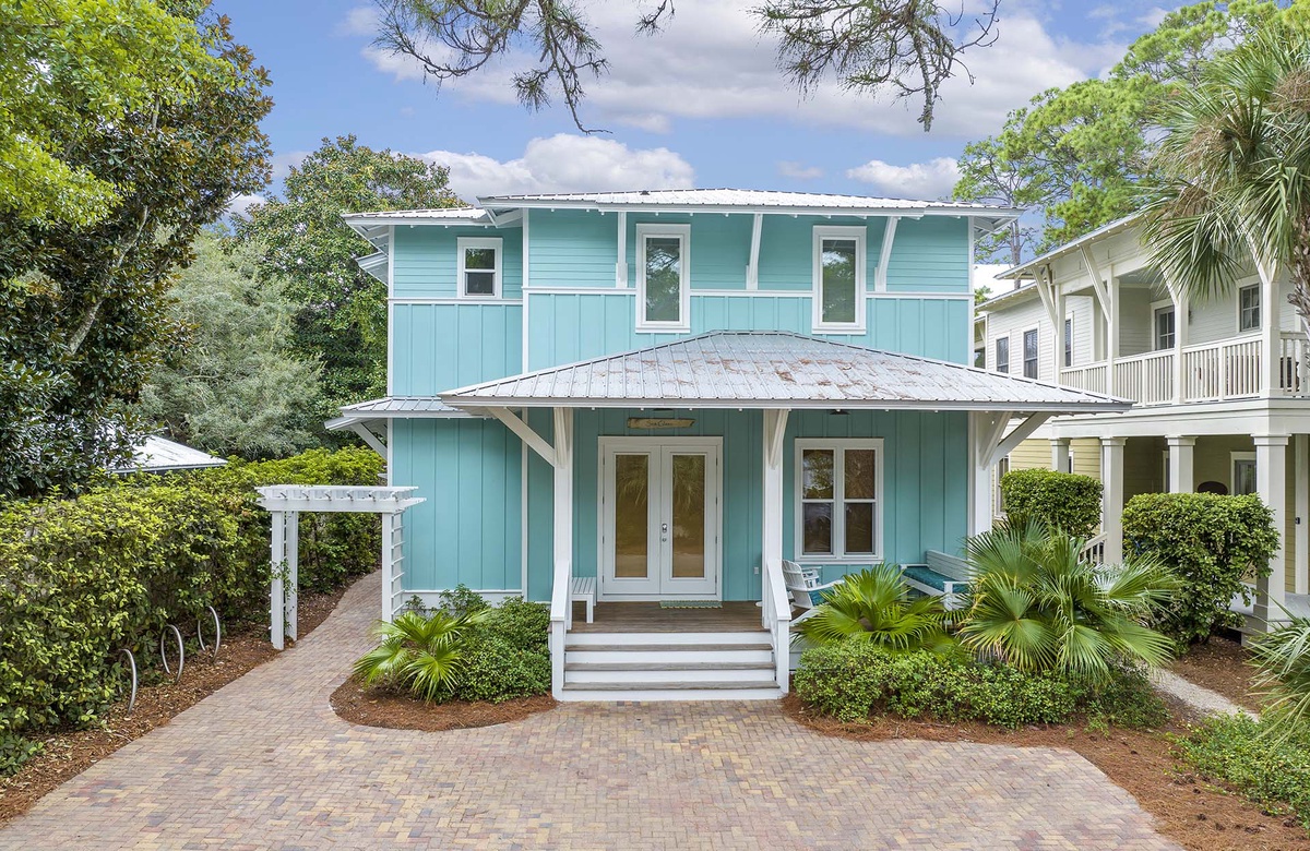 Grayton Sea Glass is a stunning, architect designed home located in historic Old Grayton Beach, about 400 yards from the white, sugar sand beaches of the Gulf of Mexico. This lovely home is beautifully decorated with a calming, beachy color palette and comfortably sleeps 10 guests in 3 king bedrooms, and a 4th bedroom with 2 sets of twin bunks.