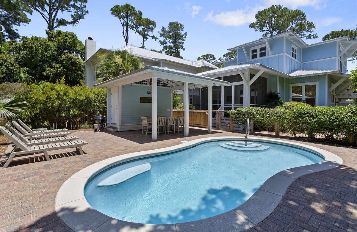 The house has an elegant, spacious feel and an added bonus screen porch with lots of comfy seating, overlooking the 12’ x 22’ heated pool. For added convenience, there’s a pool side bath and outside hot and cold shower. There is plenty of space to move about so that two families can easily enjoy the house, yet maintain their own measured degree of privacy, with TV's in every bedroom. A large laundry room, under counter ice maker and high end appliances top off this great home. Truly a wonderful place to make vacation memories that will last a lifetime!