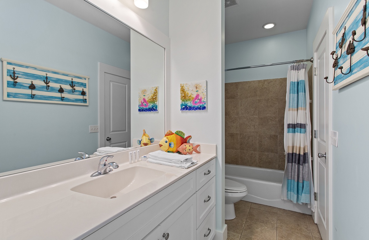 - King bedroom with shared bathroom – shower/tub combination