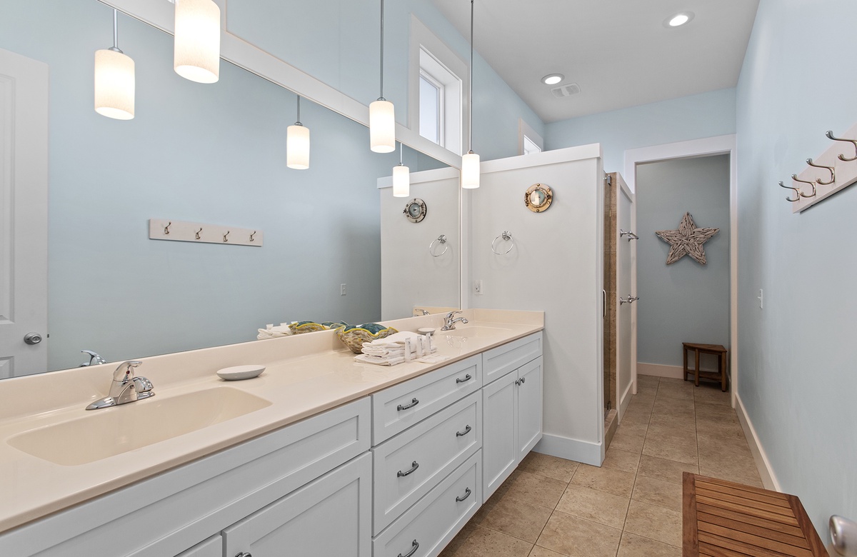 - King bedroom with nice private bathroom with double vanities and large shower