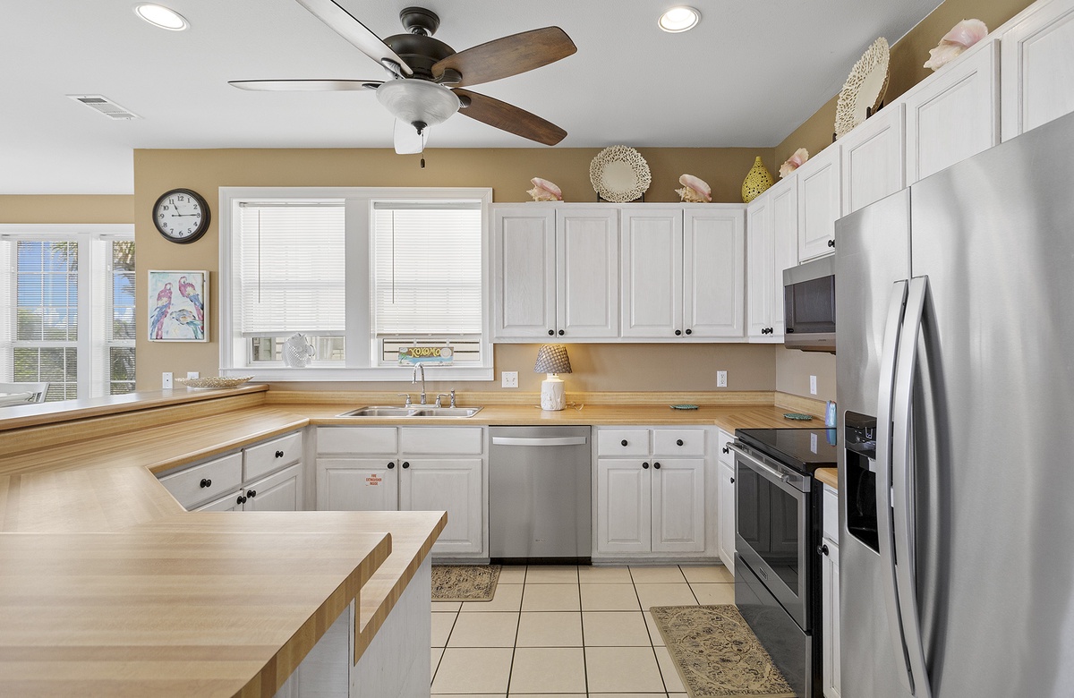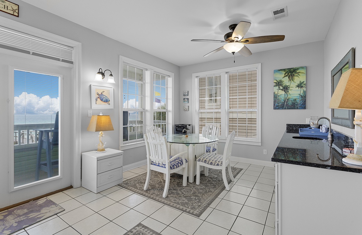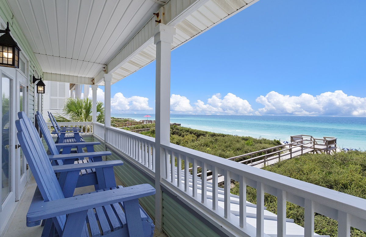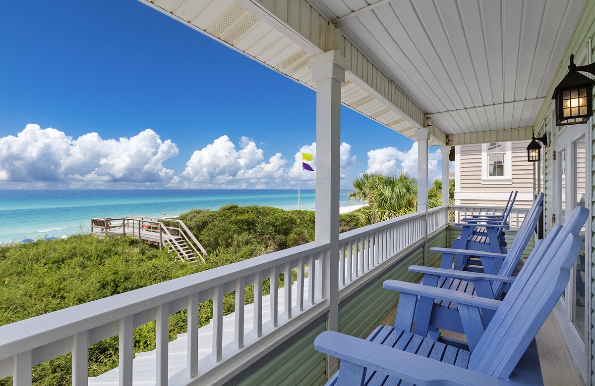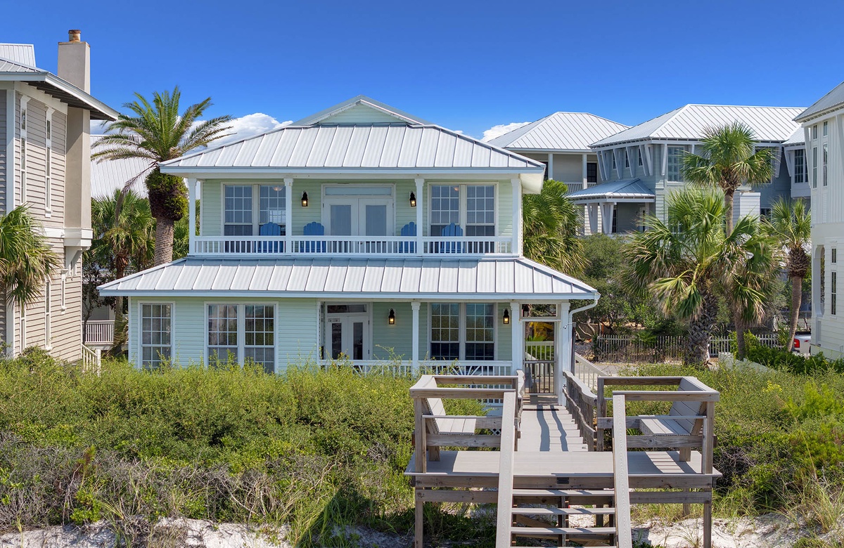 Kokomo is a lovely vacation home, and with lots of recent updates, it’s a great place to gather with family and/or friends. It comfortably accommodates 14 guests with 1 king bed and 6 queen beds. Located in the charming, gated community of Old Florida Beach, this gulf front home offers 4 porches with awesome views of the emerald surf and sugar sand beach. The quaint community provides walking paths and paved sidewalks for leisurely strolls down to the community pool or community lake dock, perfect for kayaking or canoeing on the nearby coastal dune lake.
