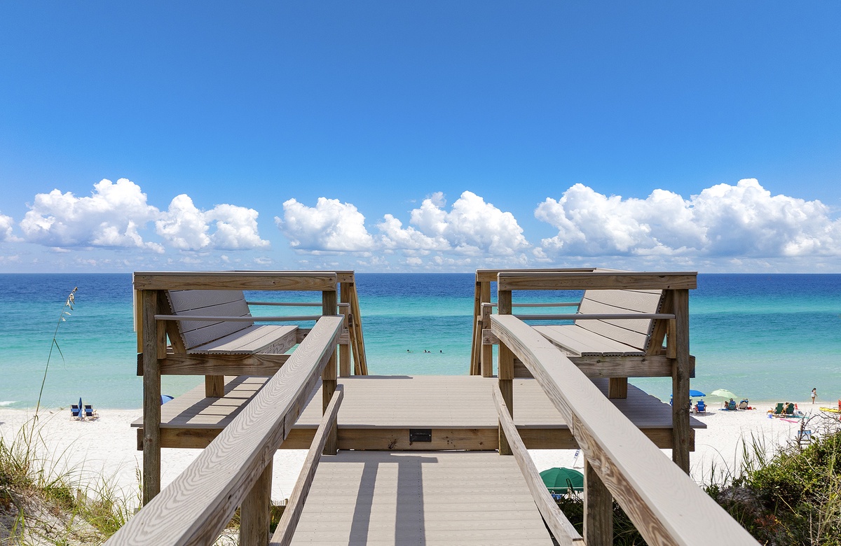 The floor plan offers privacy for everyone, and plenty of room for everyone to gather. The porch and outdoor dining table provides additional room for the nights you decide to cook and dine-in. Down your private walk way to the beach, enjoy the elevated bench seating for those who want to comfortably view the sunrise, sunset and beach without touching the sand. And location, location, location! Kokomo is located approximately midway between Sandestin/Baytowne Wharf and world famous Seaside; just 8 miles to Sandestin and 6 miles to Seaside.