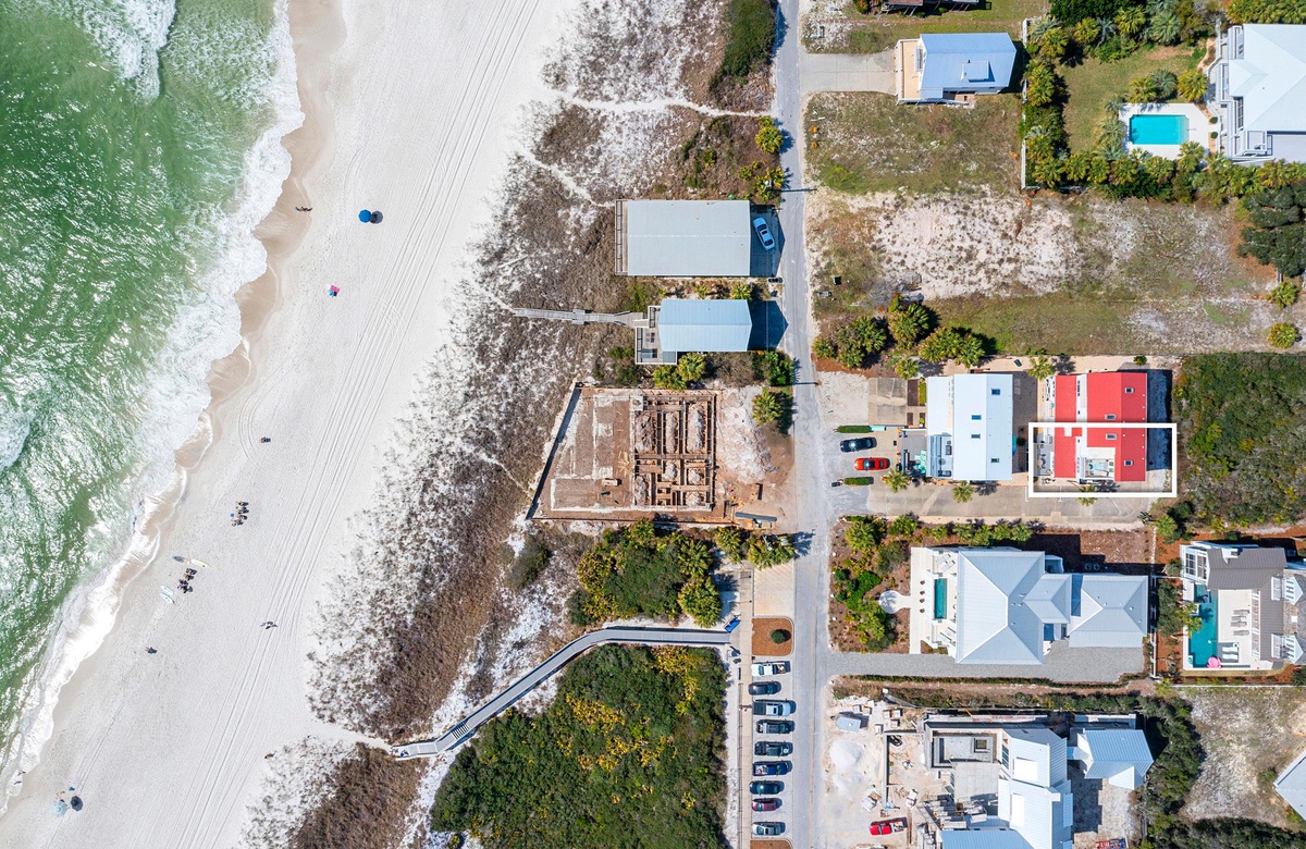With the home’s Inlet Beach location, vacationers are within close proximity to the beach, high-end shopping, popular restaurants, and coastal activities like festivals and outdoor concerts. Home to various shops and restaurants, 30Avenue is the perfect place to visit after some fun in the sun on the beach. Neighboring Camp Helen State Park provides a beautiful spot for outdoor recreation, such as hiking, paddle boarding, and fishing. Finally, during your stay, don’t forget to check out the other quaint beach towns of Scenic Highway 30A.