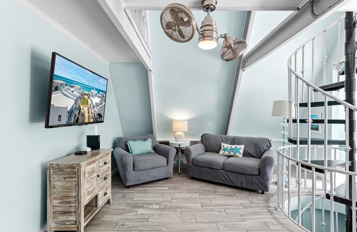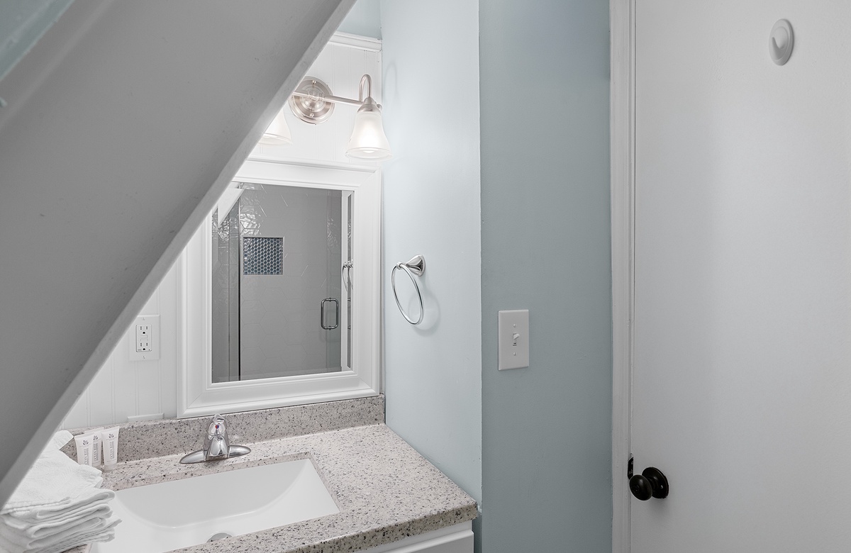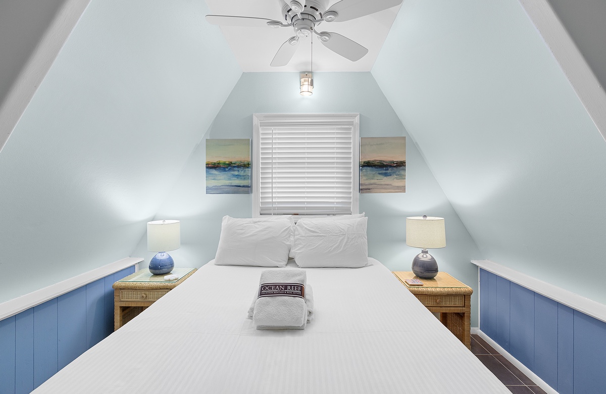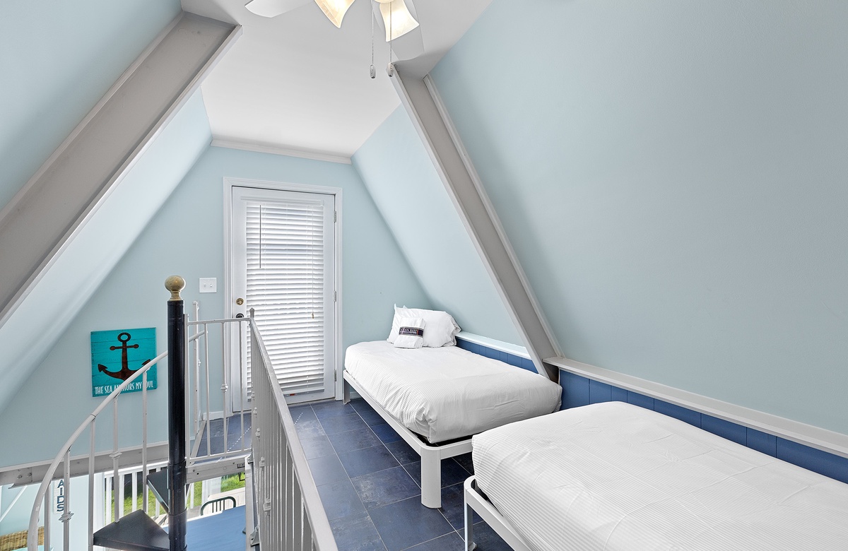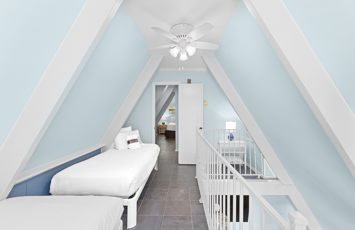 Third Floor: King bedroom with Walk-In-Shower, Loft Area with Two Twin Beds.