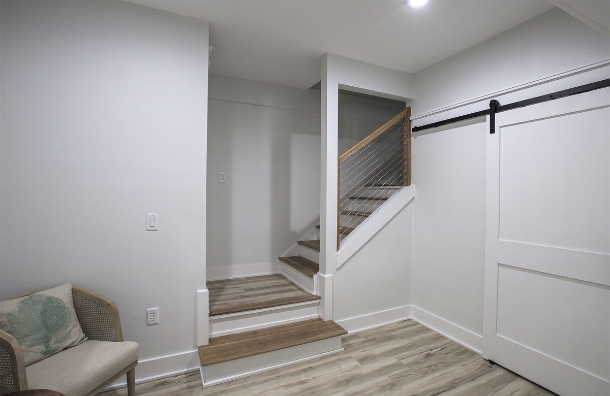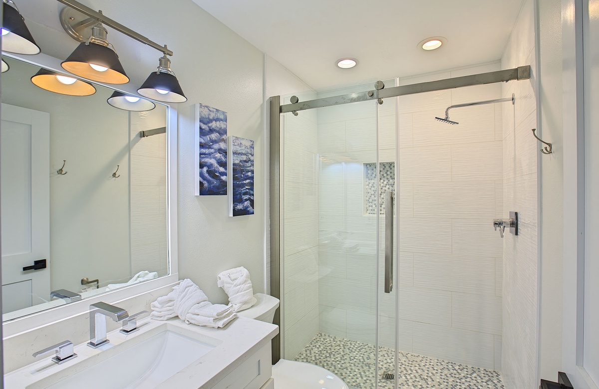 First Floor: King Bedroom, Hall Bath with Walk-In Shower and Soaking Tub, Laundry.