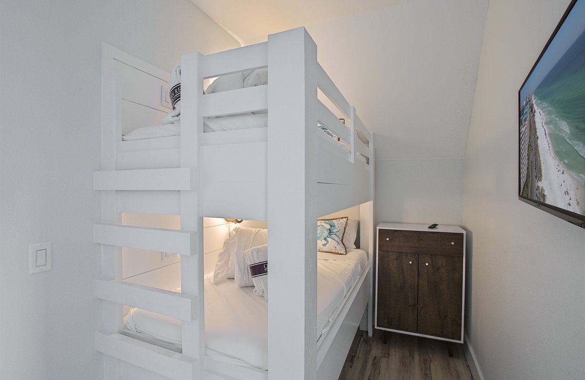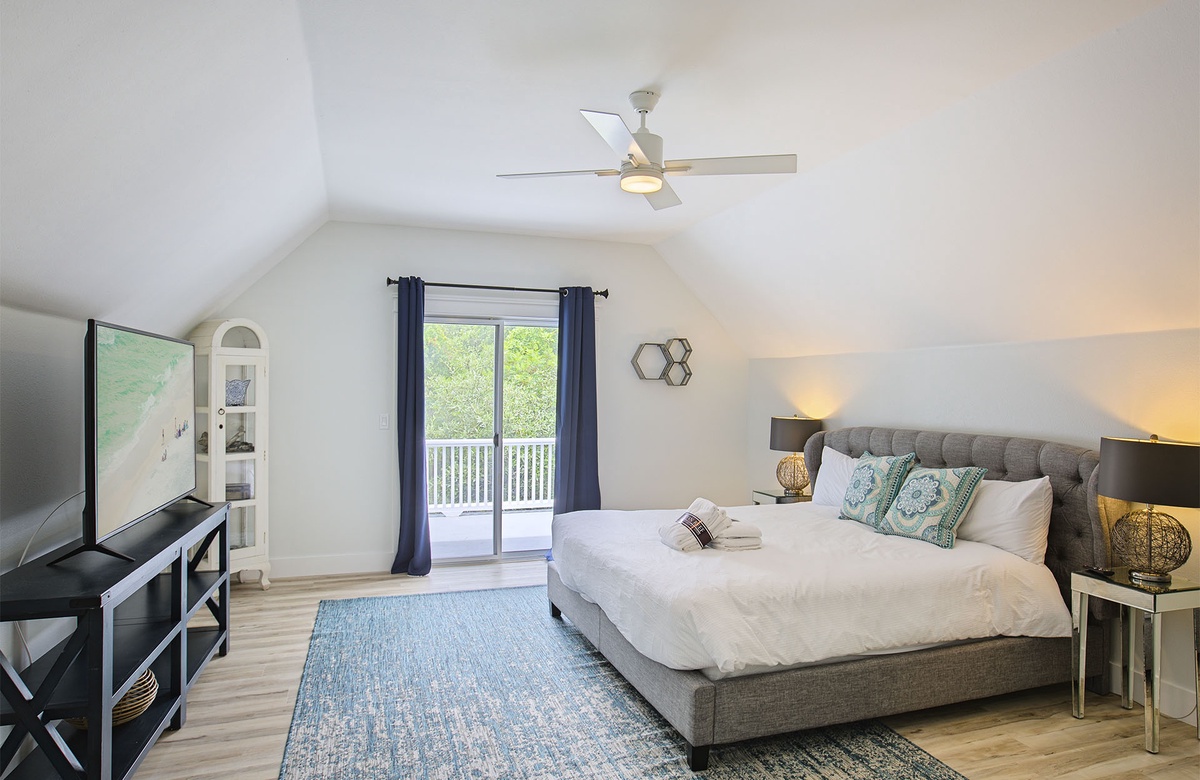 Third Floor: King Master Bedroom with Twin Bunk and Walk-In Shower + Balcony Access.