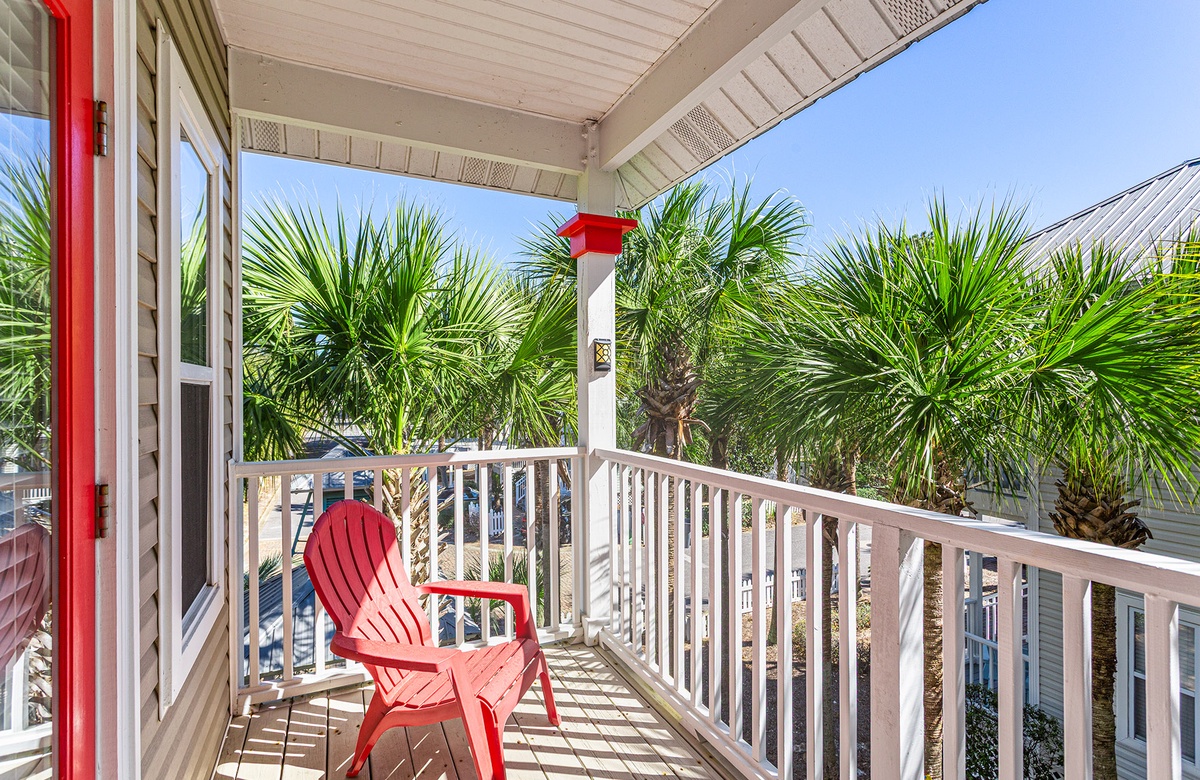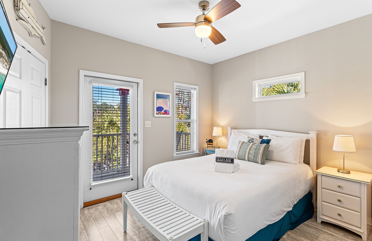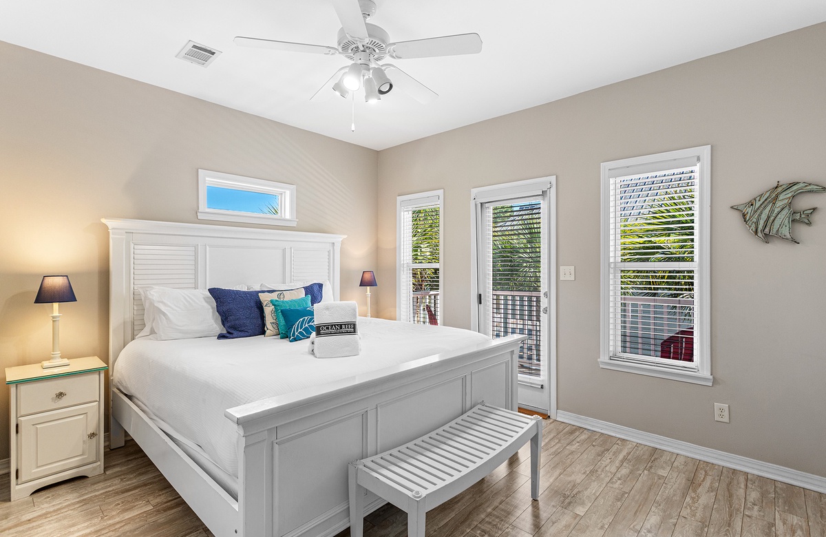 Second Floor: King Primary Bedroom with Balcony Access and Full Bath, Queen bedroom with Balcony Access and Full Bath.