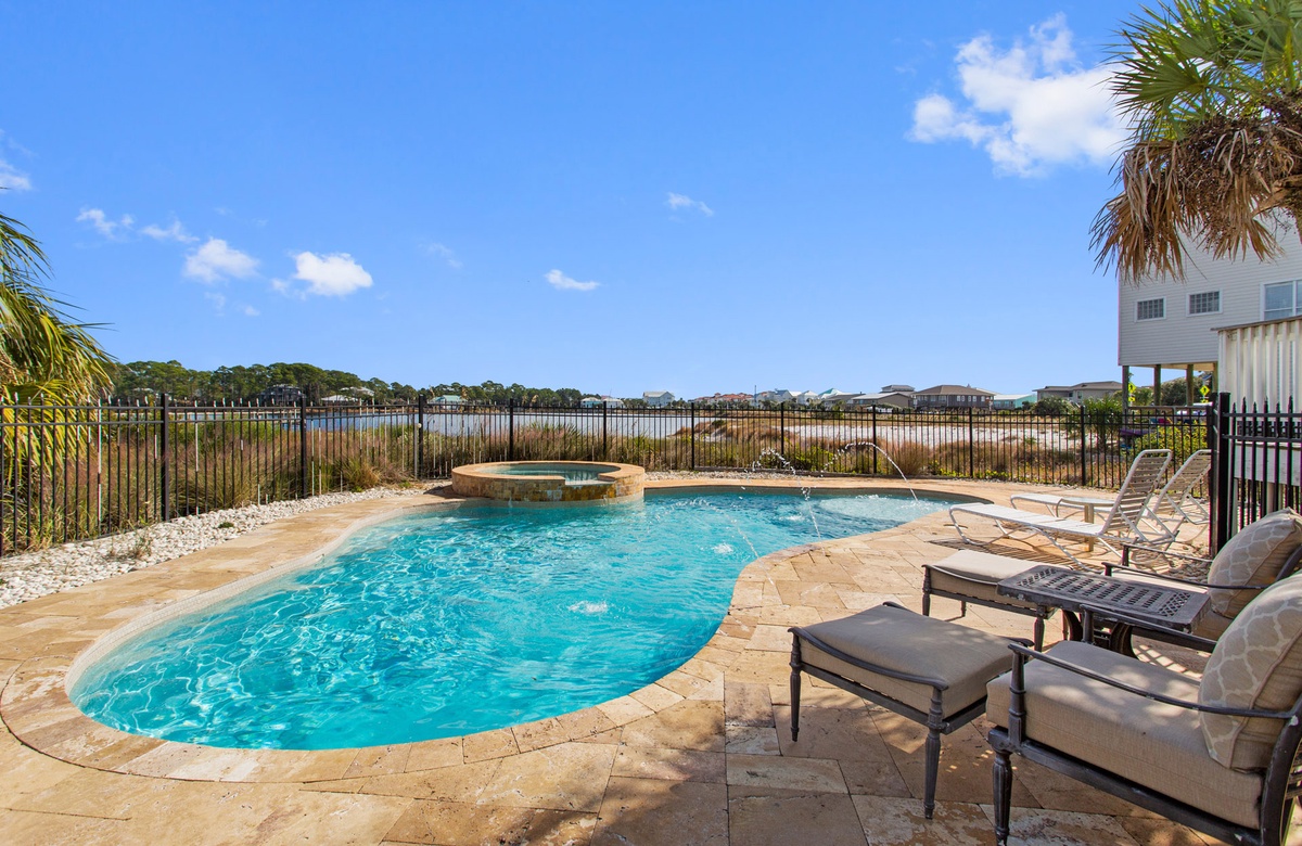 Upon arrival, guests will cross an enchanting paver bridge to reach the private oasis. A set of outdoor stairs leads to a wraparound balcony furnished with tables, chairs, and a BBQ grill. From here, you can enjoy views of the beach, dune lake, and picture-perfect coastal setting. The lakefront, lagoon-shaped pool offers a relaxing sanctuary for you and your guests. You’ll find yourselves spending hours here, soaking up the sun, taking a refreshing swim, drinking a cold cocktail, and enjoying each other’s company.