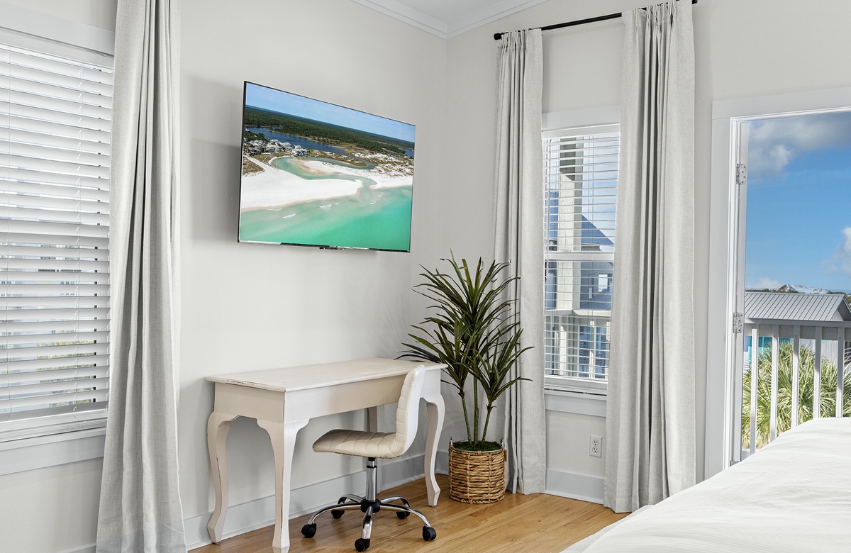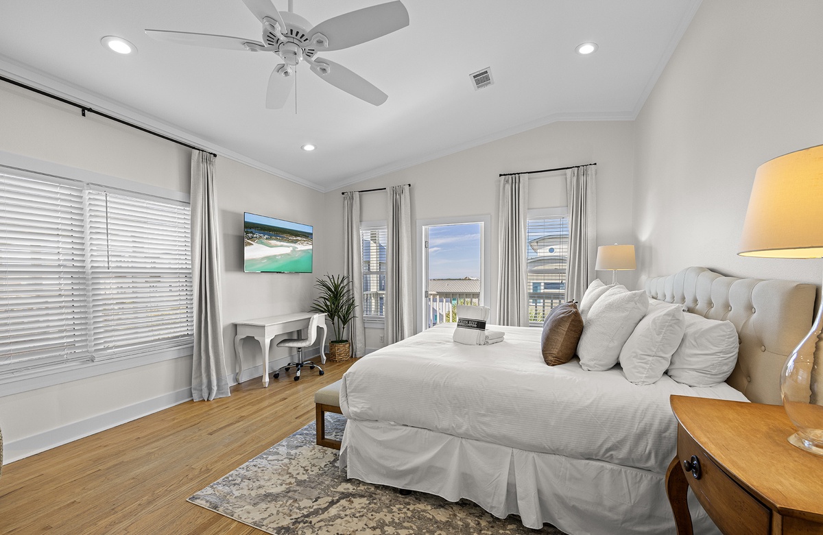 - King bedroom with TV, private bath